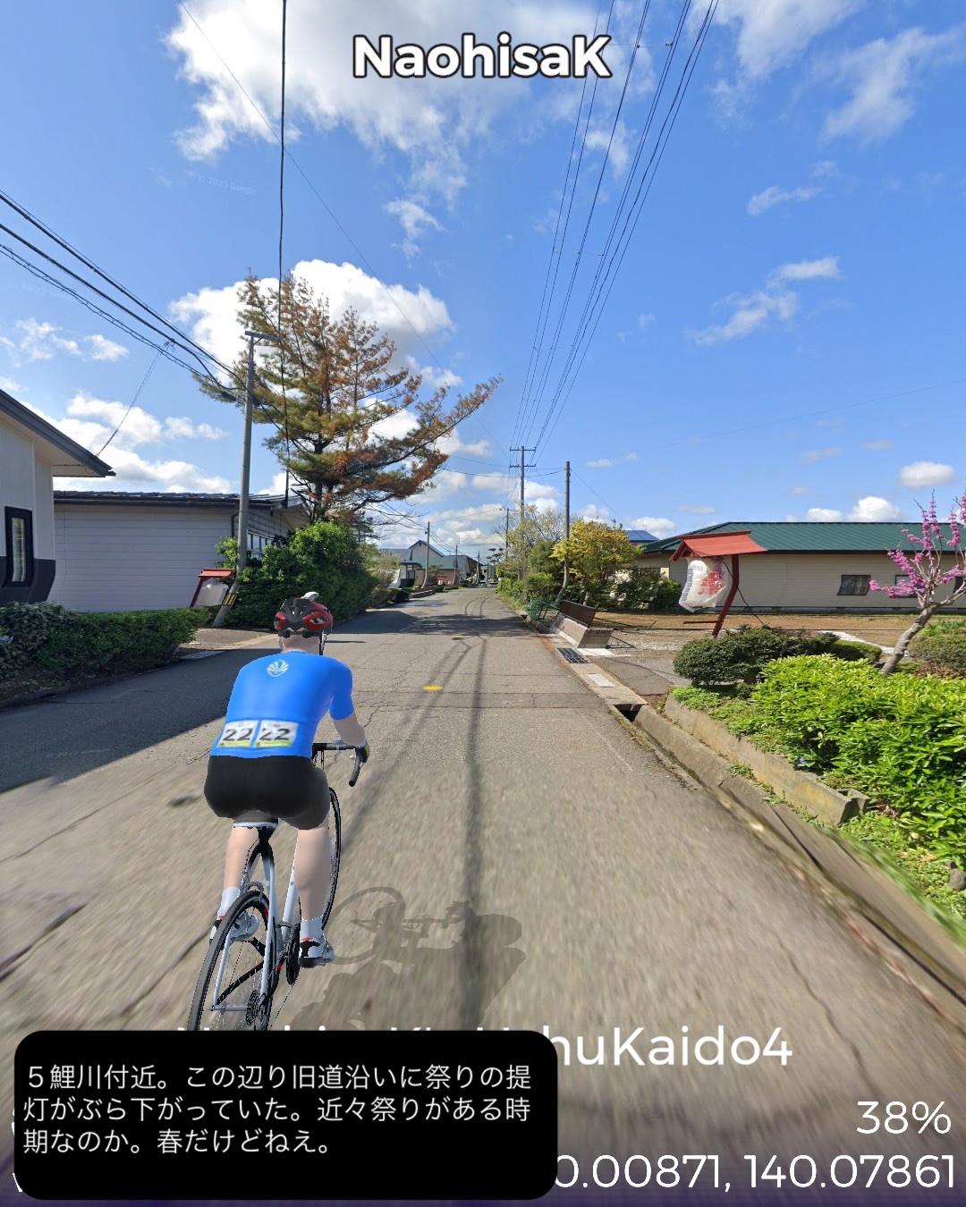 VRサイクリング 海岸沿いも飽きたのでまたしばらく内陸側山形県方面…