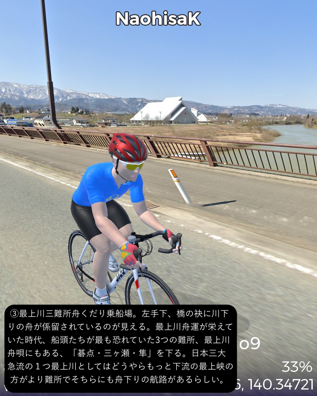 VRサイクリング 舟形街道 2日目。最上川をさらに下って庄内地方へ…