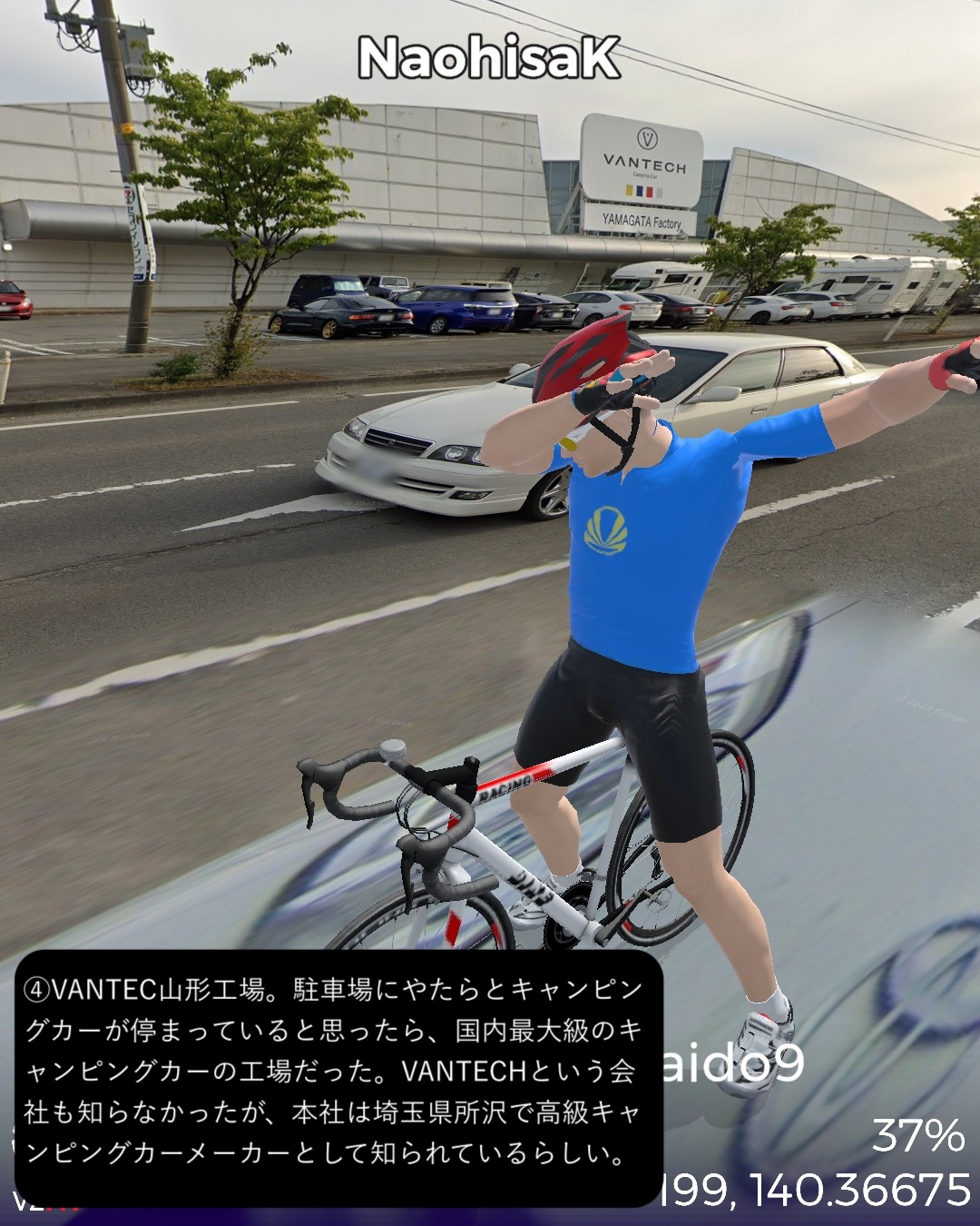 VRサイクリング 海岸沿いも飽きたのでまたしばらく内陸側山形県方面…