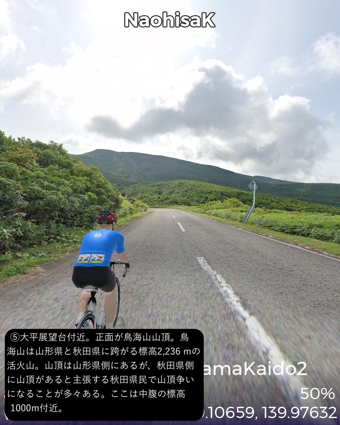 VRサイクリング 鹿角街道にて秋田県北東部から青森県南東部を横断し…