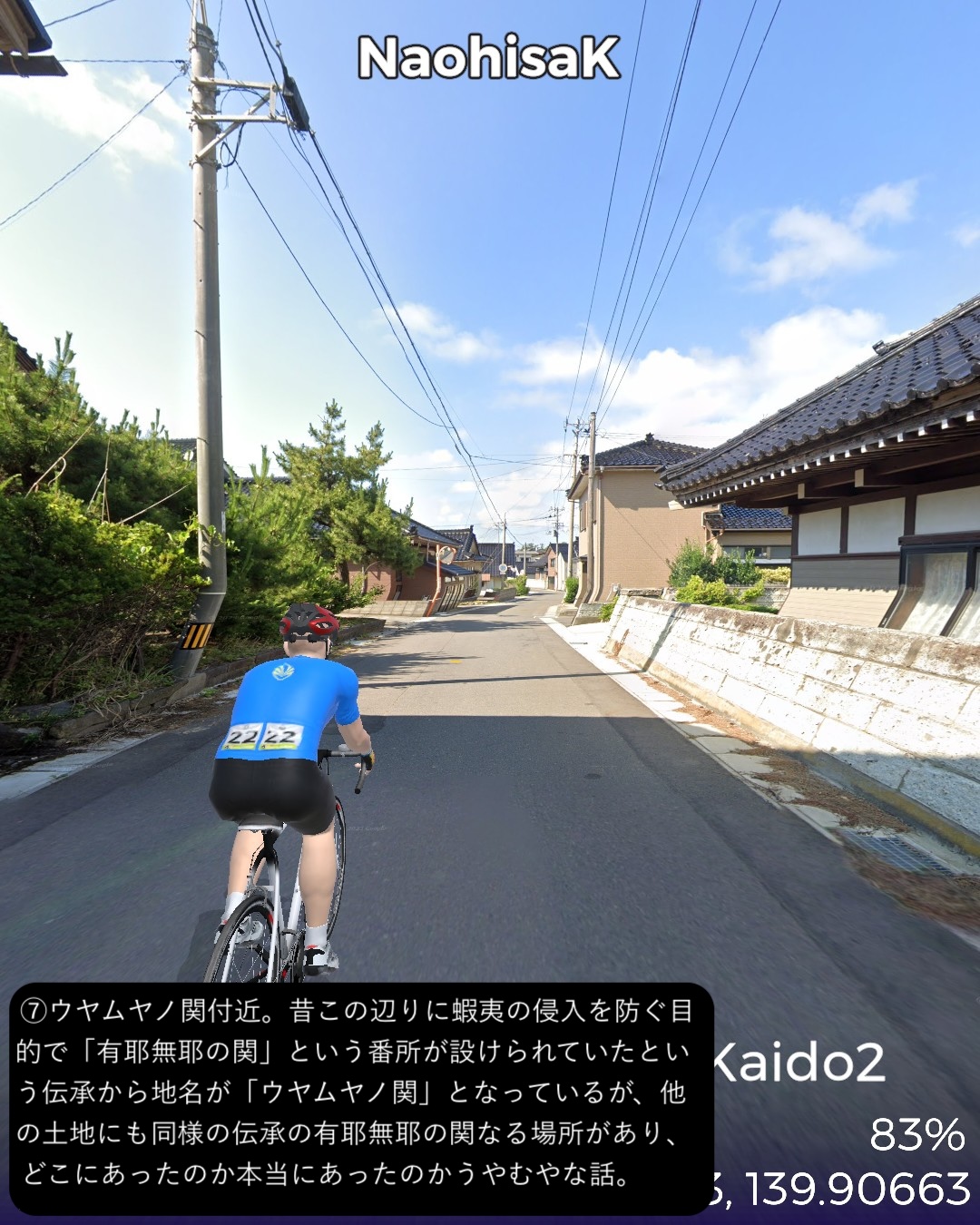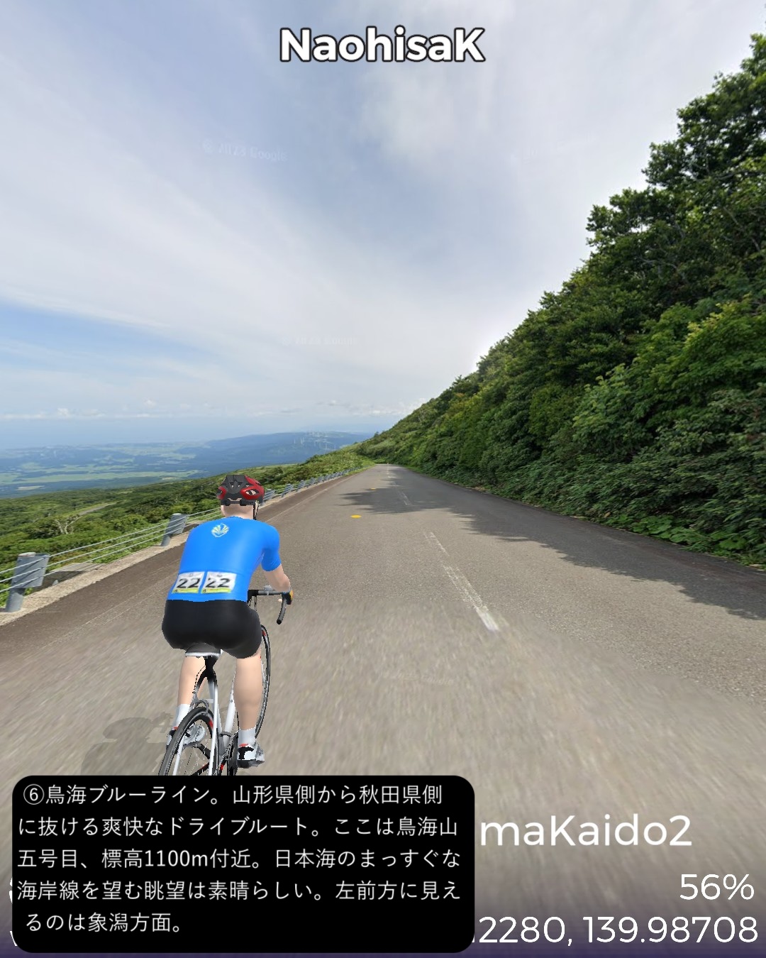 VRサイクリング 大間越街道 2日目。越後村上からずっと日本海岸を…