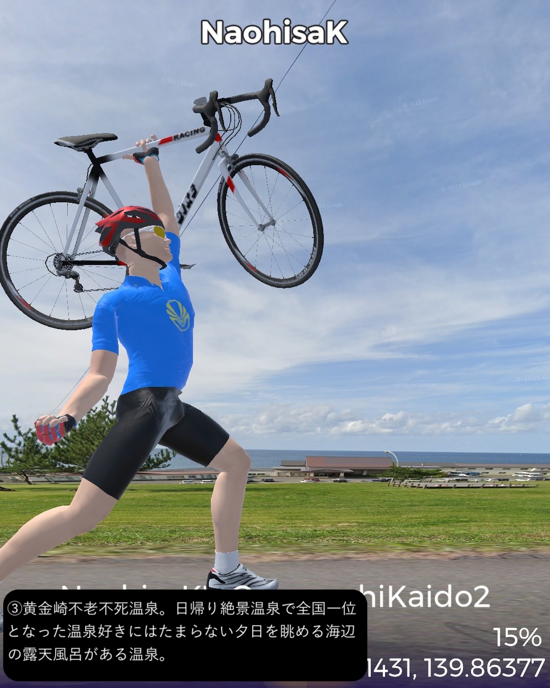 VRサイクリング 気仙道2日目。三陸海岸の南部をさらに南下の巻。水…