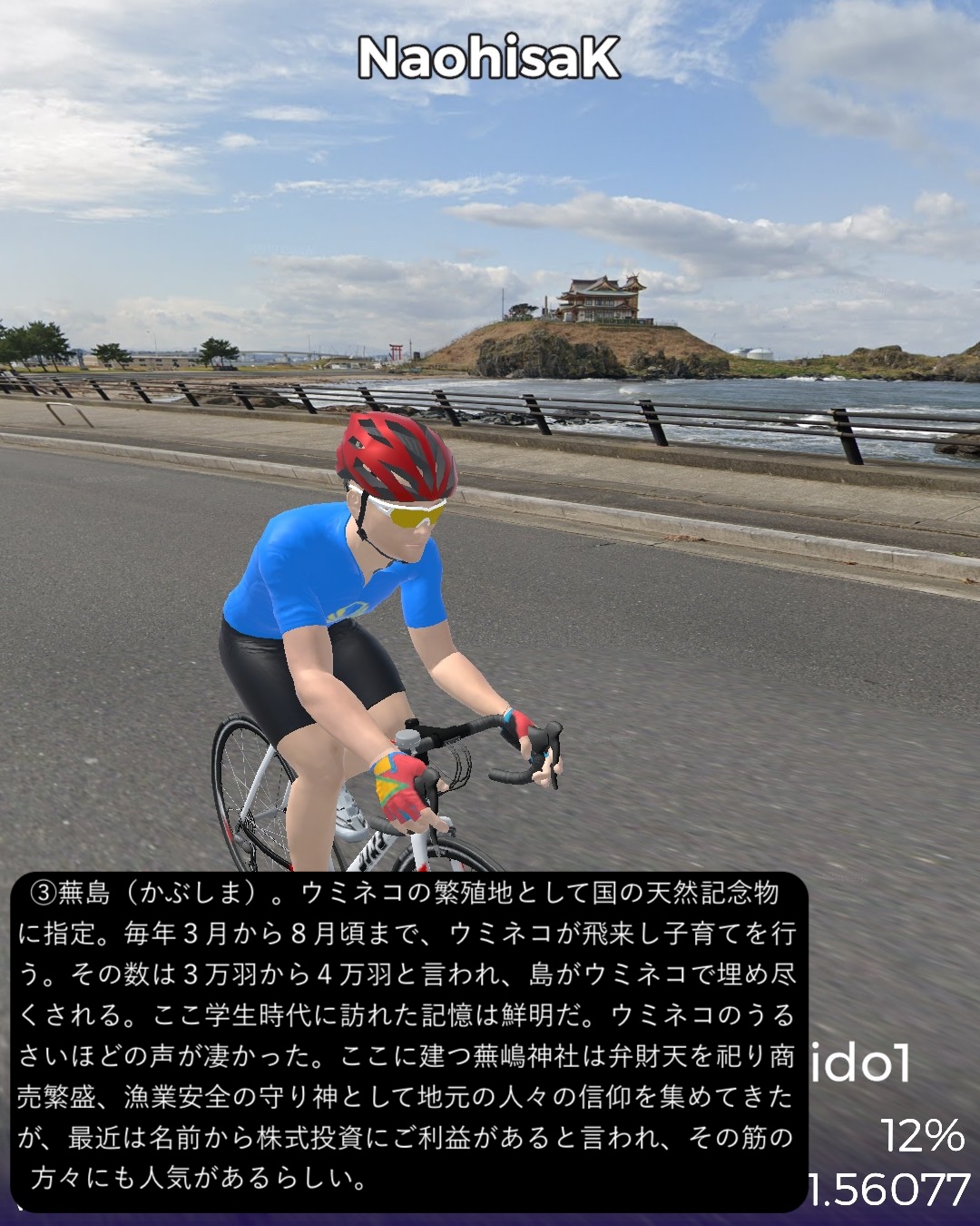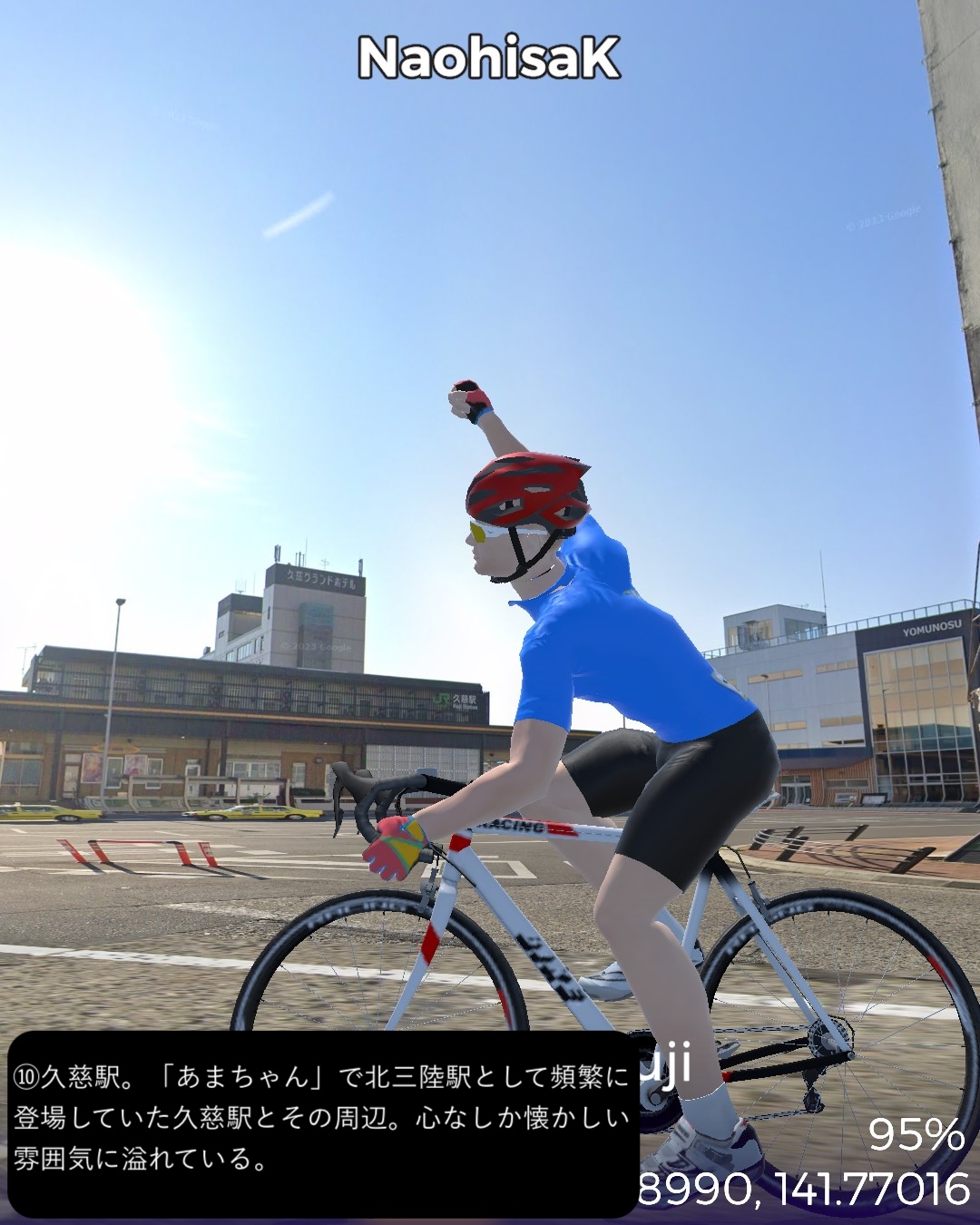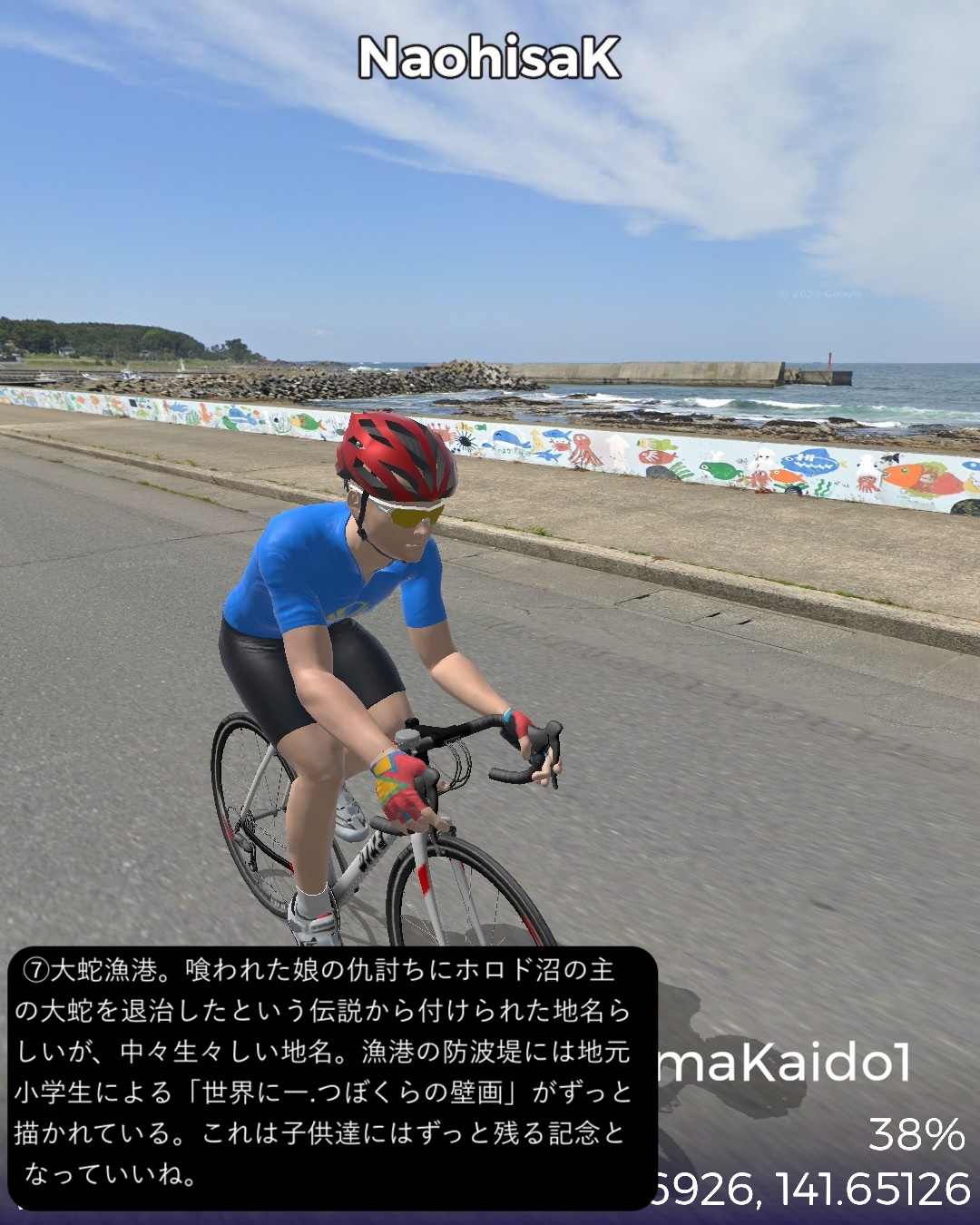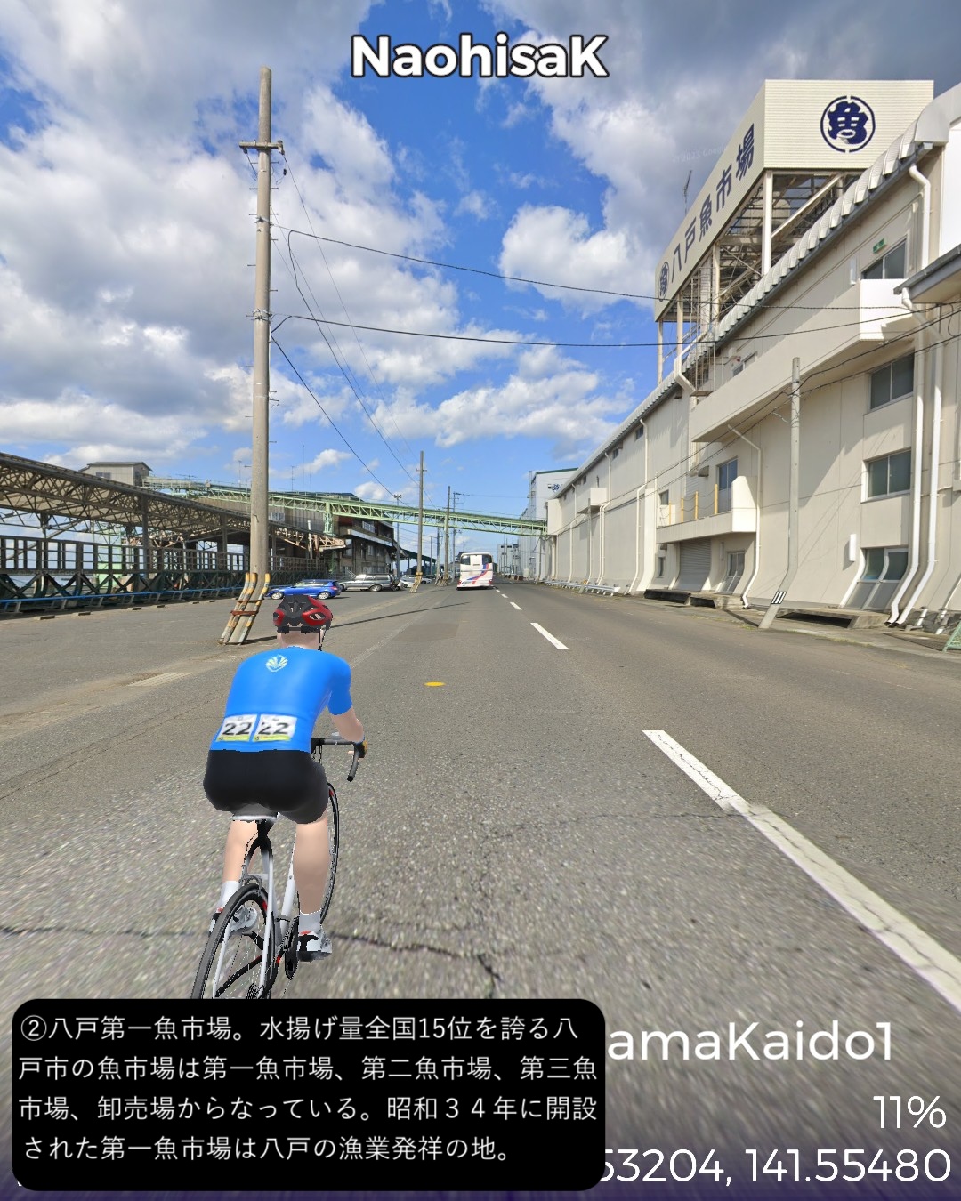 VRサイクリング 今回から三陸浜街道という街道を通っていわゆる三陸海岸を南下してみたい。その一日目として、八戸市街は本八戸駅をスタートし、最初は街道から外れて、海岸ぶちに出ると広大な八戸漁港を通り、その先風光明媚な種差海岸を巡った後は、ちょっと海岸線から引っ込んだ街道を進み、岩手県に入ると「あまちゃん」で知られるようになった南部潜水夫の発祥地、種市を過ぎ、まもなく「あまちゃん」の舞台となった久慈に到着。「あまちゃん」で北三陸駅となった久慈駅をゴールとする67kmの行程。今回は前半の種差海岸が白眉だった。八戸市街の外れに位置するウミネコの群れる蕪島、奇岩と多彩な花々が咲く中須賀の岩礁地帯、びっくりするぐらいだだっ広い砂浜の大須賀海岸、そして波打ち際まで天然芝生が広がる種差天然芝生地とダイナミックに展開する海岸沿いの遊歩道を通して走るというラッキーにもレアな体験となった。その分後半はほぼ海岸線から引っ込んだ国道を中心とした走りとなり面白みには欠けた。ゴールの久慈駅周辺は「あまちゃん」の撮影地ということで、なんとなく見覚えのある街並み。「あまちゃん」の聖地巡礼の本番は次回に期待できそう。