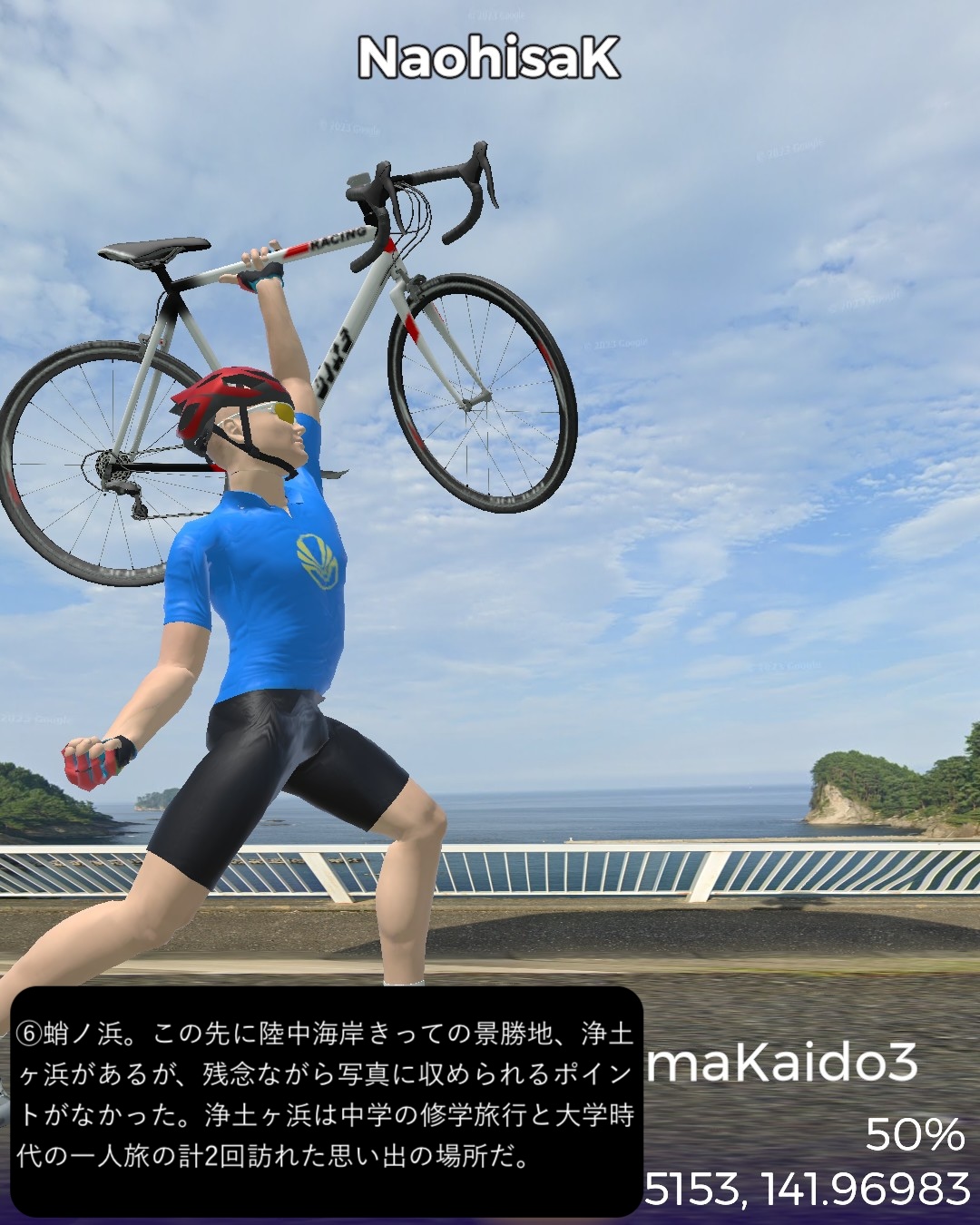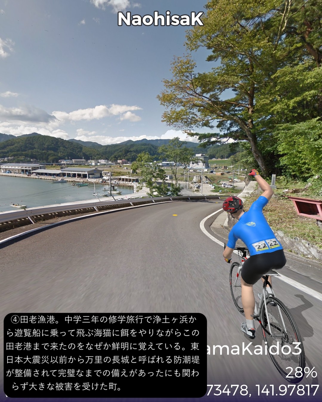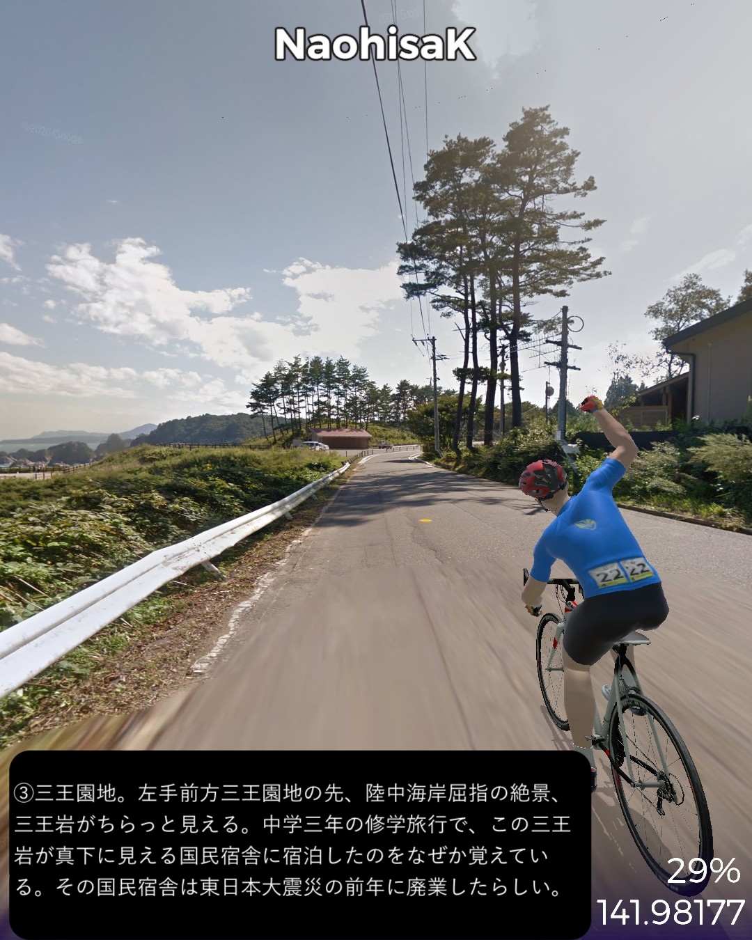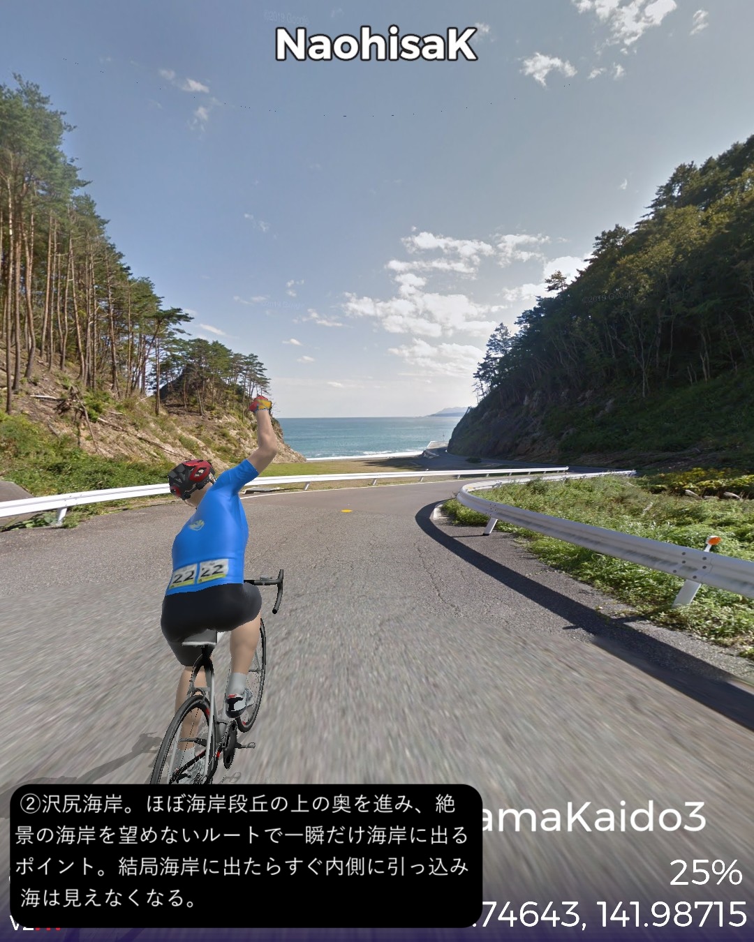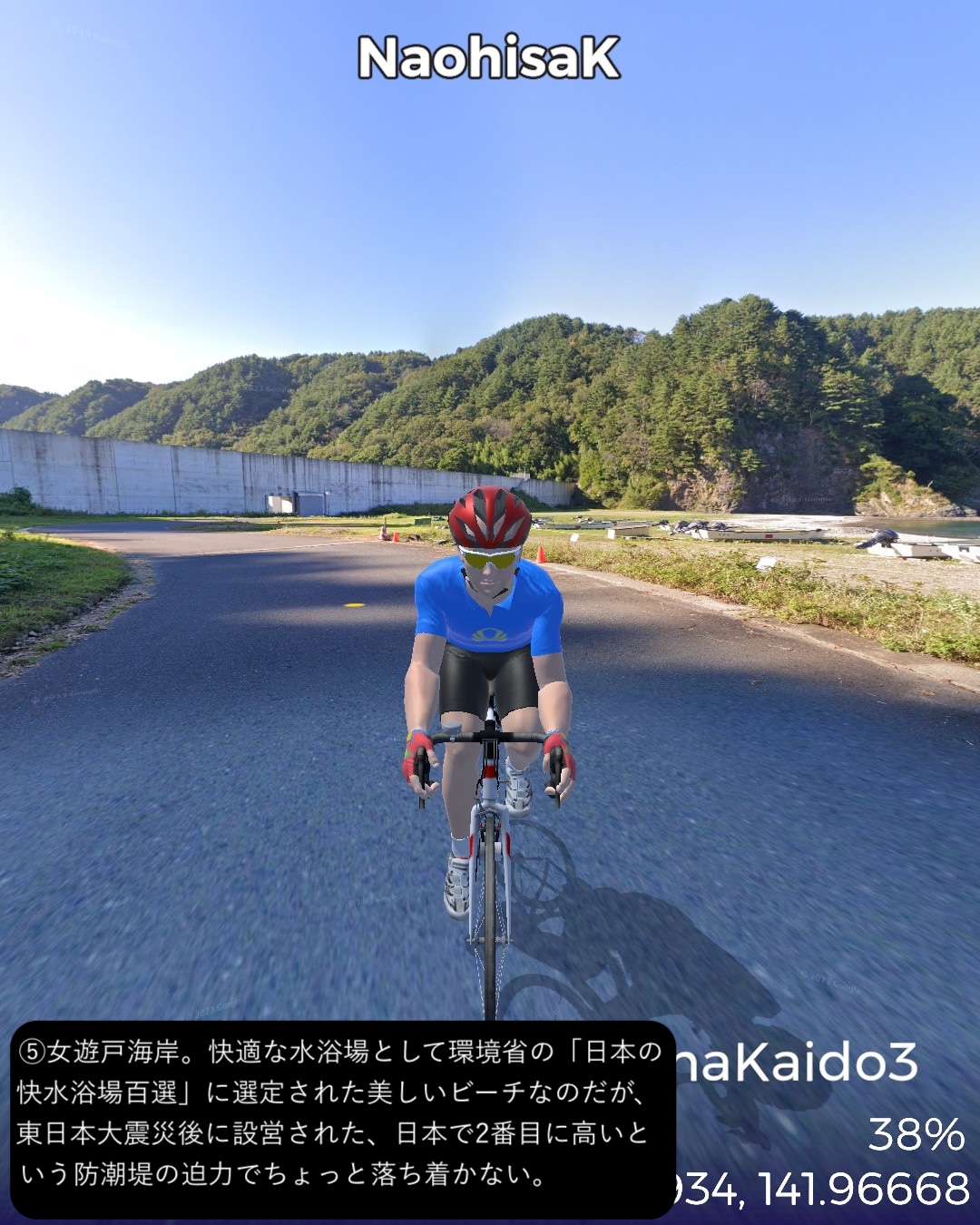 VRサイクリング 気仙道2日目。三陸海岸の南部をさらに南下の巻。水…