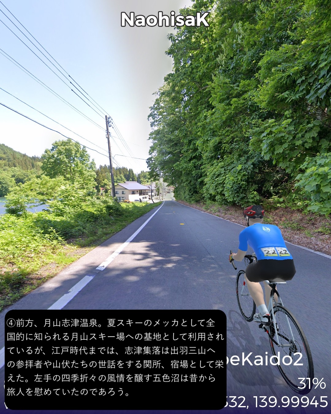 VRサイクリング 大間越街道 2日目。越後村上からずっと日本海岸を…