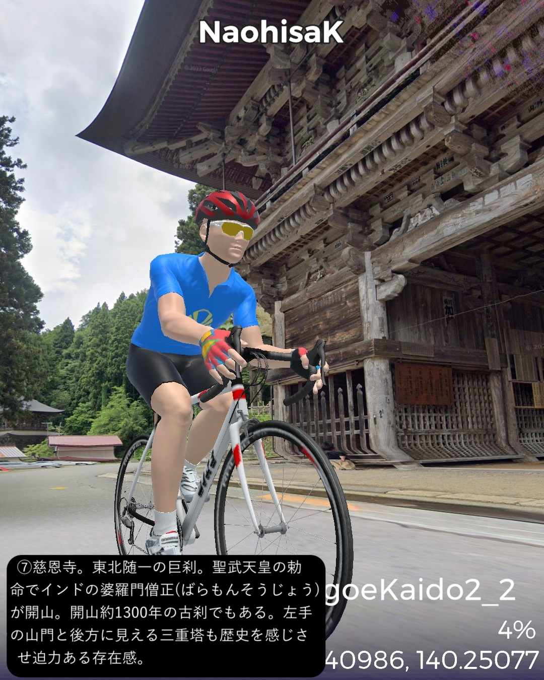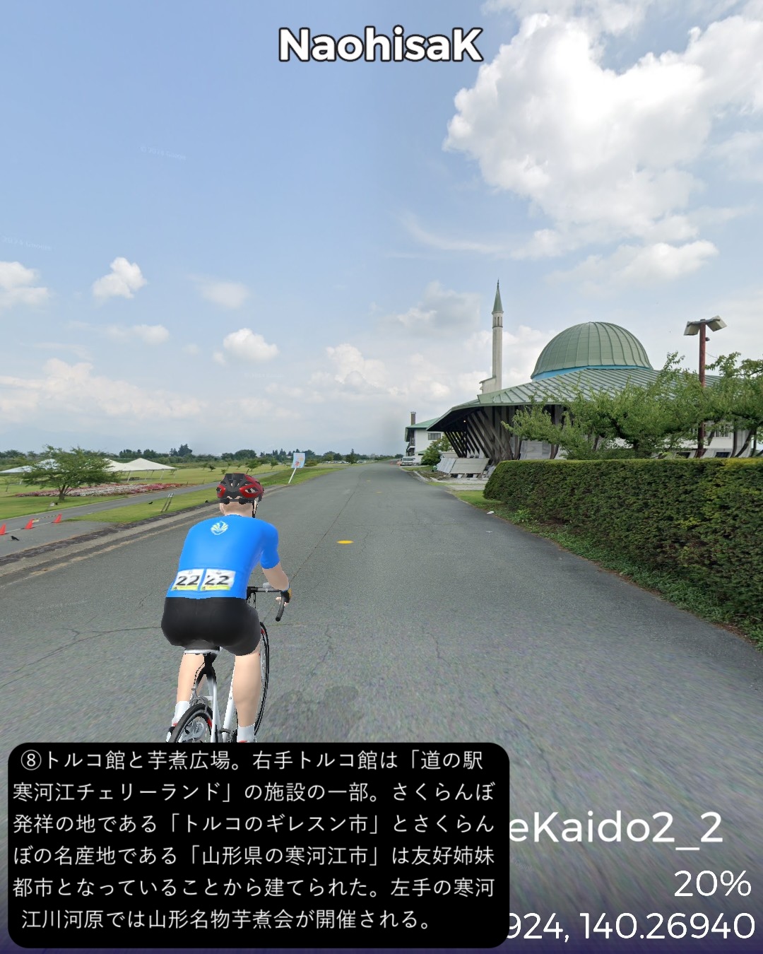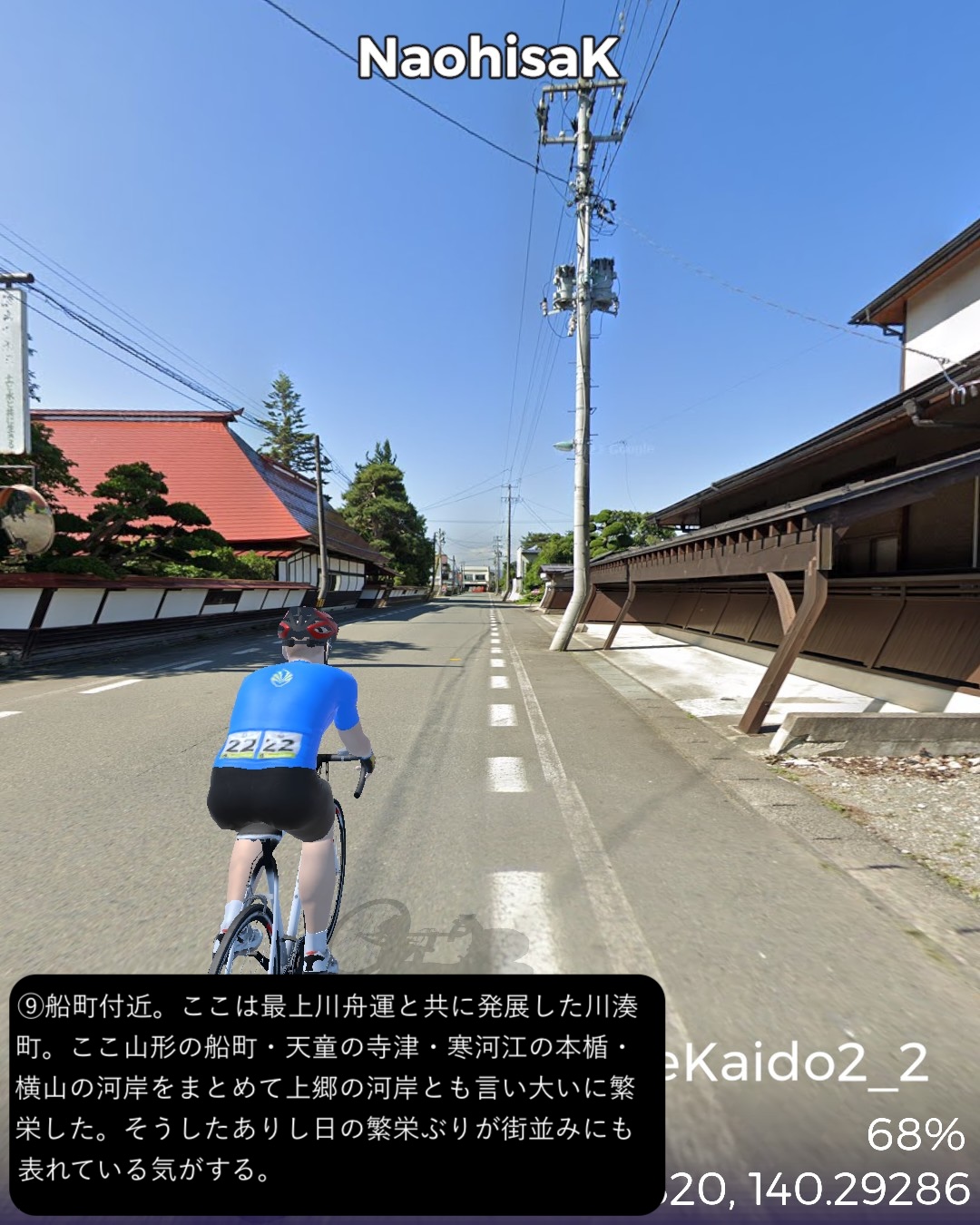VRサイクリング、羽州街道 2日目 弘前から秋田県へと進む。弘前市…