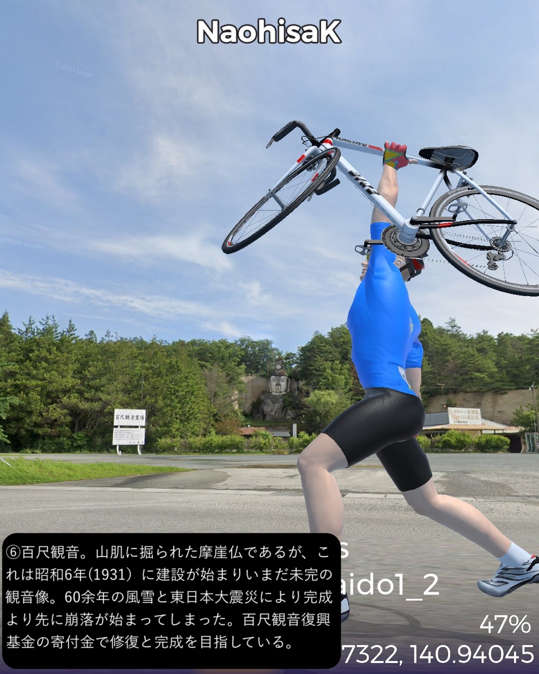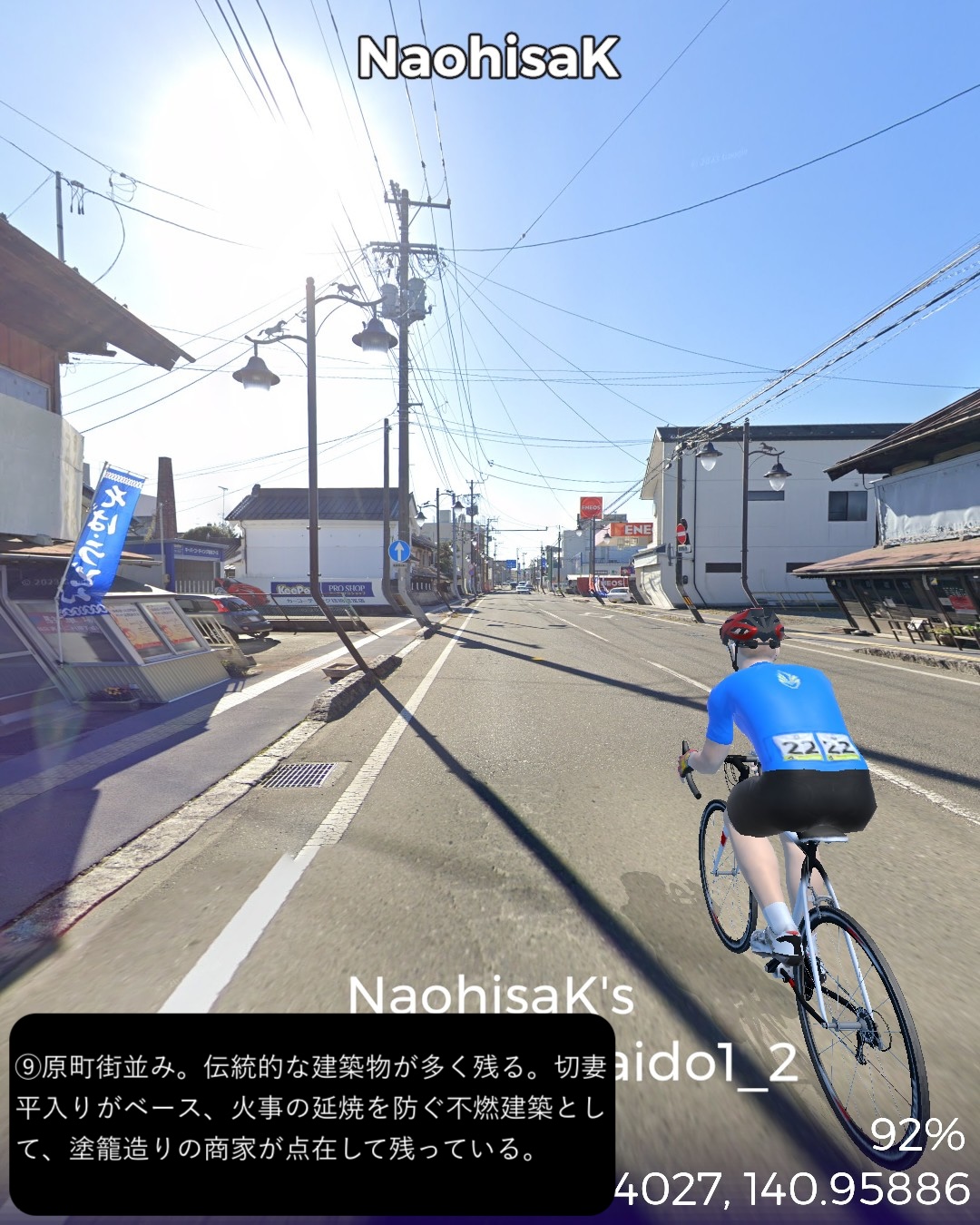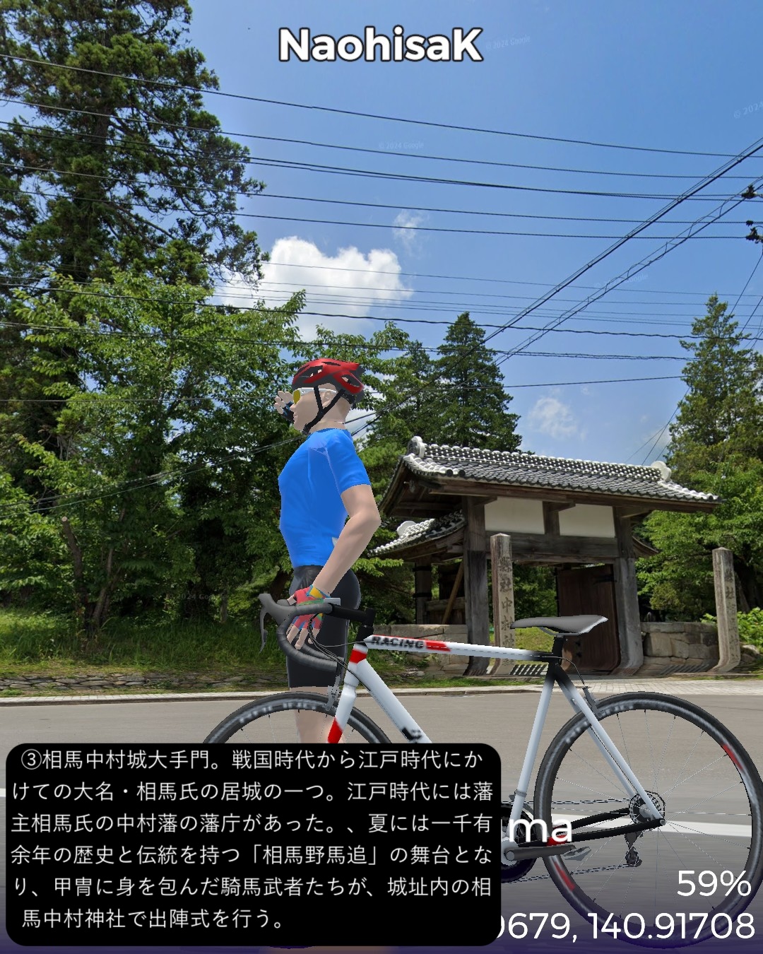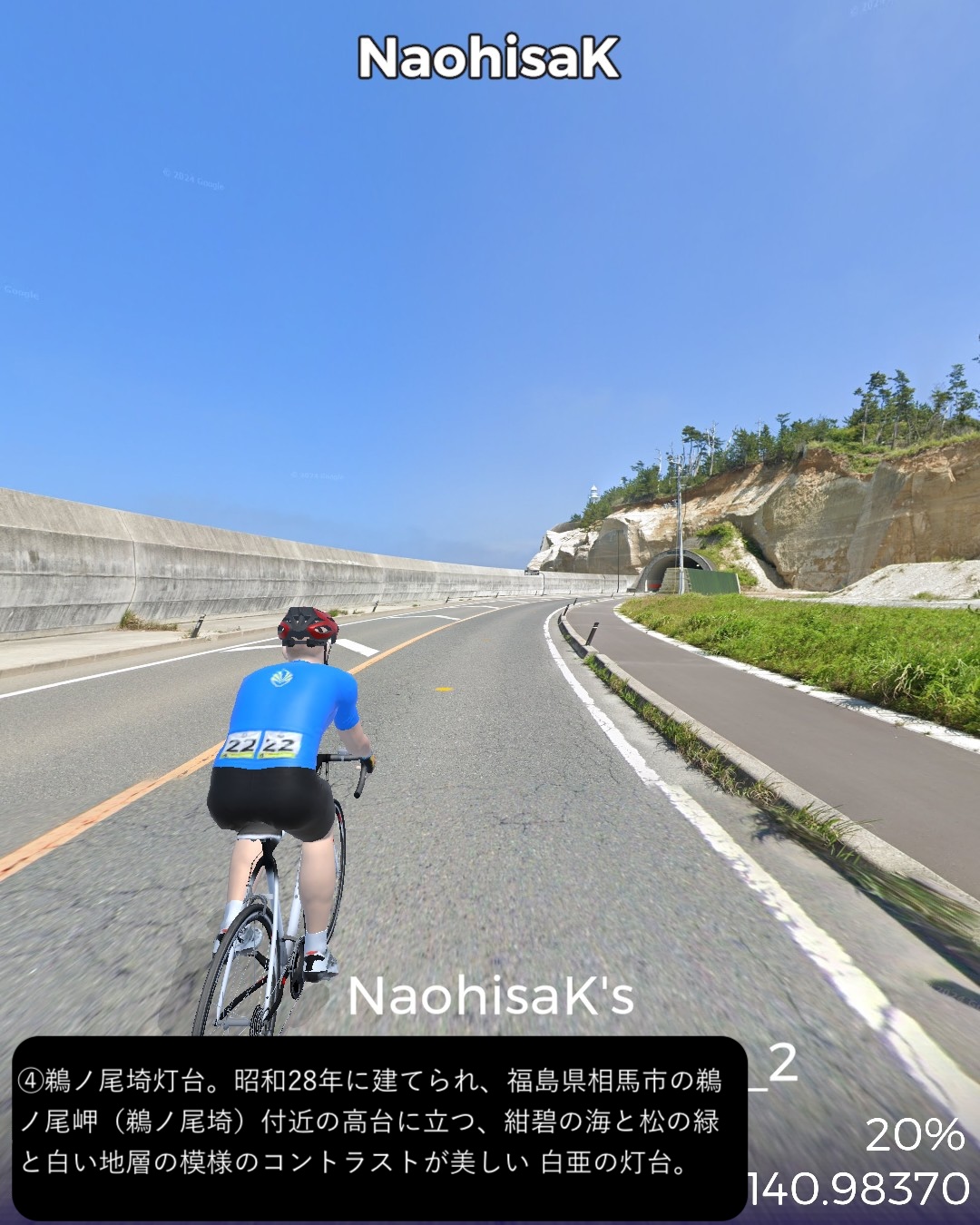 VRサイクリング 今回からJR常磐線に沿ったいわゆる浜通りを南下して水戸を目指す。陸前浜街道という五街道に次ぐ位置付けの街道の旧街道をできる限り走ることとする。今回はその1日目で、宮城県から福島県北部まで進む。本来は奥州街道との分岐点となる岩沼宿を始点としたいところであるが、ルート設定の都合上、前々回のゴールとした逢隈をスタート地点として南へ進む。ミニ城下町である亘理宿、坂元宿を過ぎ、磐城国、福島県に入ると新地宿を通り、相馬藩の城下町中村宿まで進んだところで、街道を外れて寄り道モード。浜の街道という名称ながらここまで海岸の近くを通らなかったので、名勝地として知られる松川浦と太平洋の長い砂州、大洲海岸を通ってみる。また街道に戻り鹿島宿を経て原町宿を過ぎた先、相馬野馬追の会場となっている雲雀ヶ原祭場地をゴールとする71kmの行程。陸前浜街道は名前とは裏腹に海岸沿いの道は無く、山際のルートとなっている。学者の分析によると江戸時代に街道を造成する際、数百年単位で起きる過去の大津波の浸水区間を避けてルート設定していたのではないかとのこと。よって先の東日本大震災の浸水区間も街道沿いにはほとんどないようだ。先人の見識は現代以上と言えるかもしれない。今回のルートの地域は過去にリアルには訪れたことも通過したこともない私にとっての処女地であるが、相馬の海岸に広がる潟湖、松川浦という素晴らしい景勝地があるのは初めて知った。特に松川浦と太平洋に挟まれた延々と続く砂州の道が今回のハイライトであった。次回は本来自転車で通れないヤバい地域に足を踏み入れる。