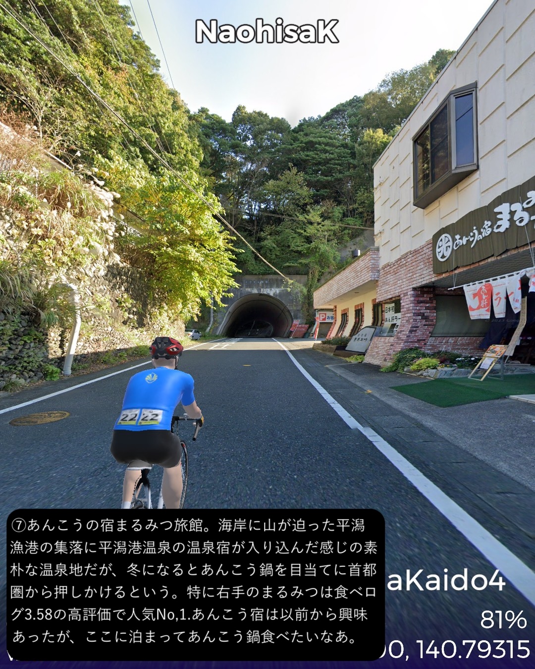 VRサイクリング 金華山道 2日目。宮城県第二の都市石巻を出発し…
