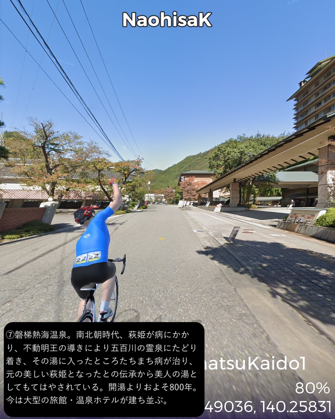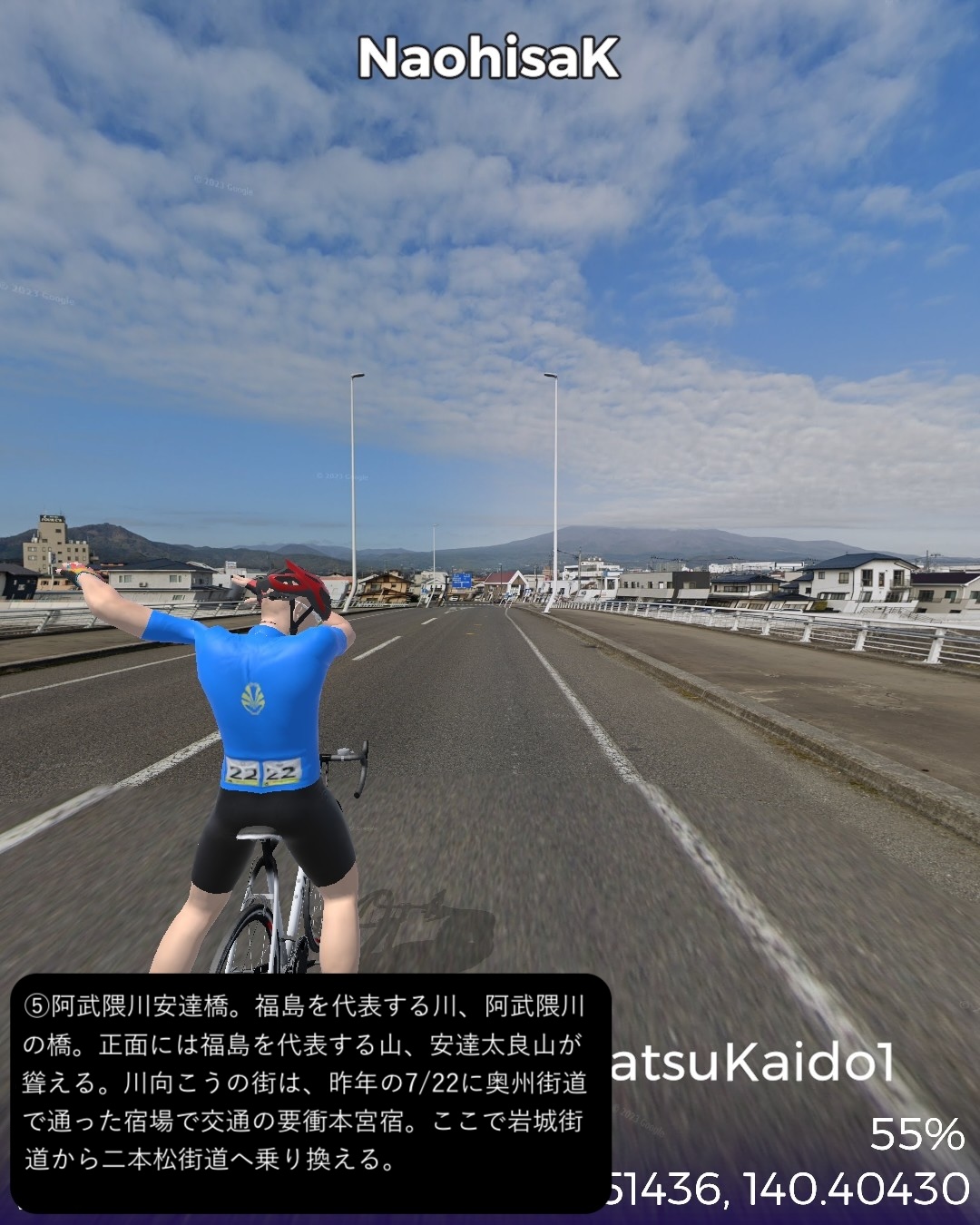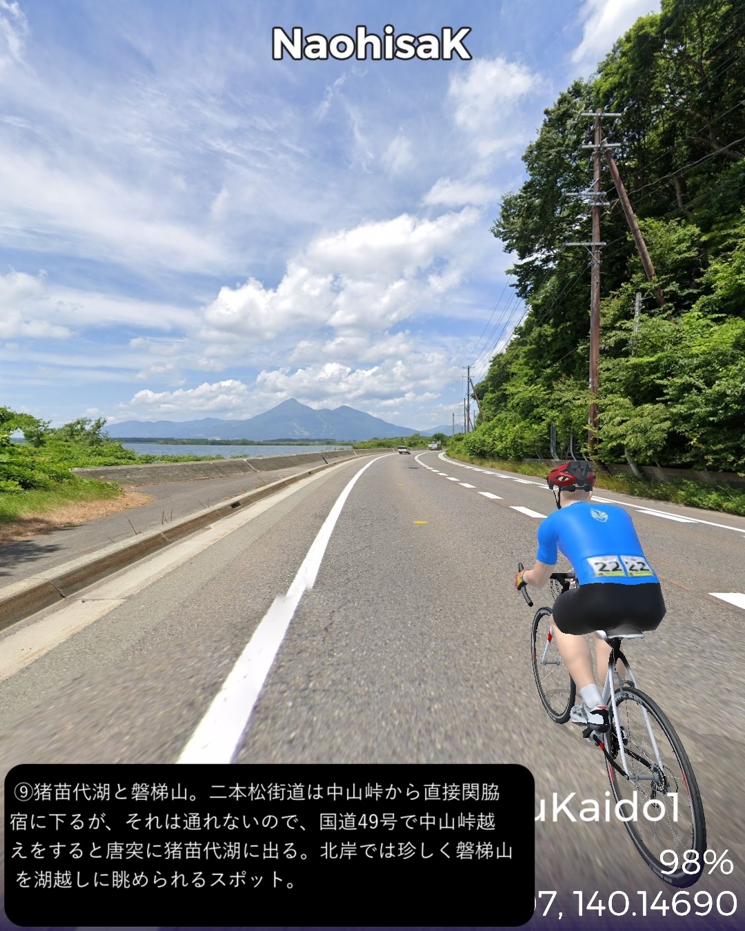 VRサイクリング 二本松街道2日目最終日。猪苗代から会津若松、さら…