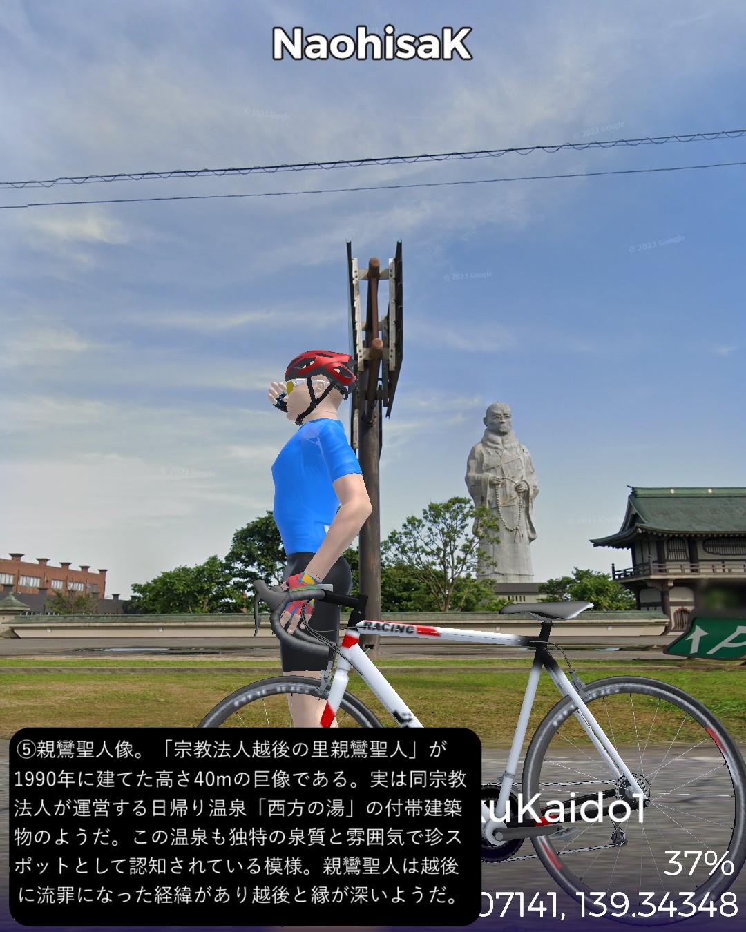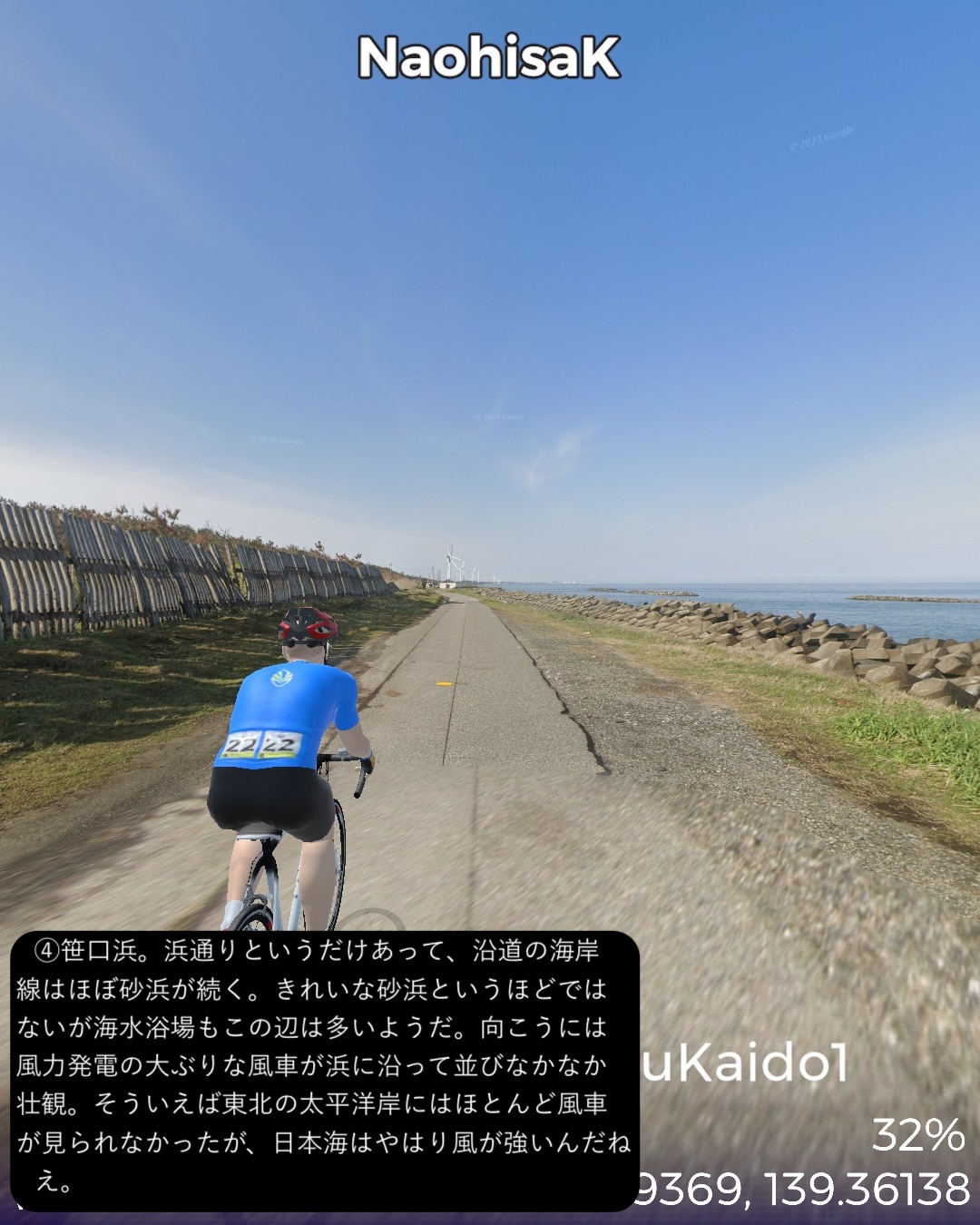 VRサイクリング 北国街道3日目。さらに越後の日本海沿岸を南西へ進…