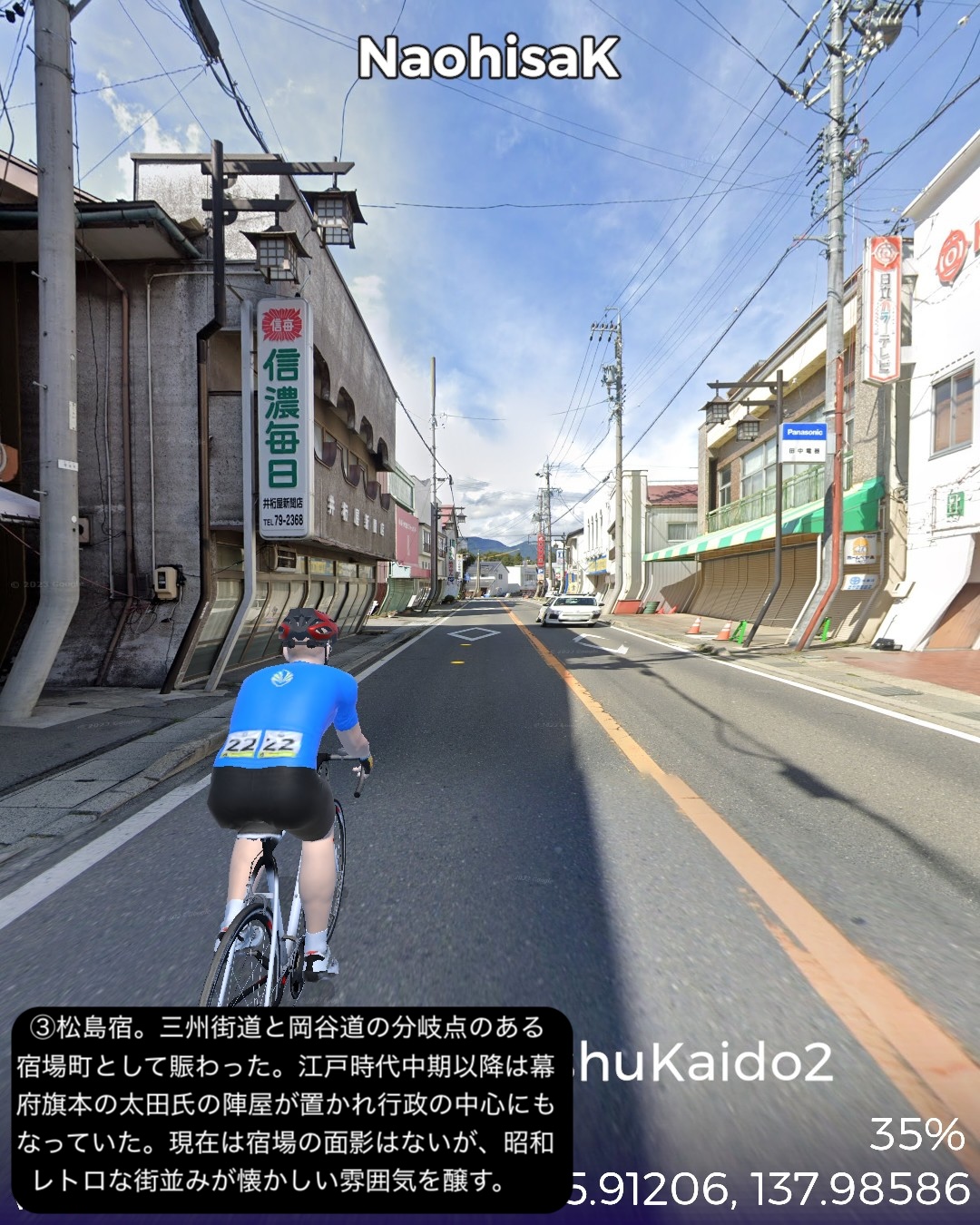 VRサイクリング 北国街道で軽井沢付近まで来たところで大笹街道に乗…