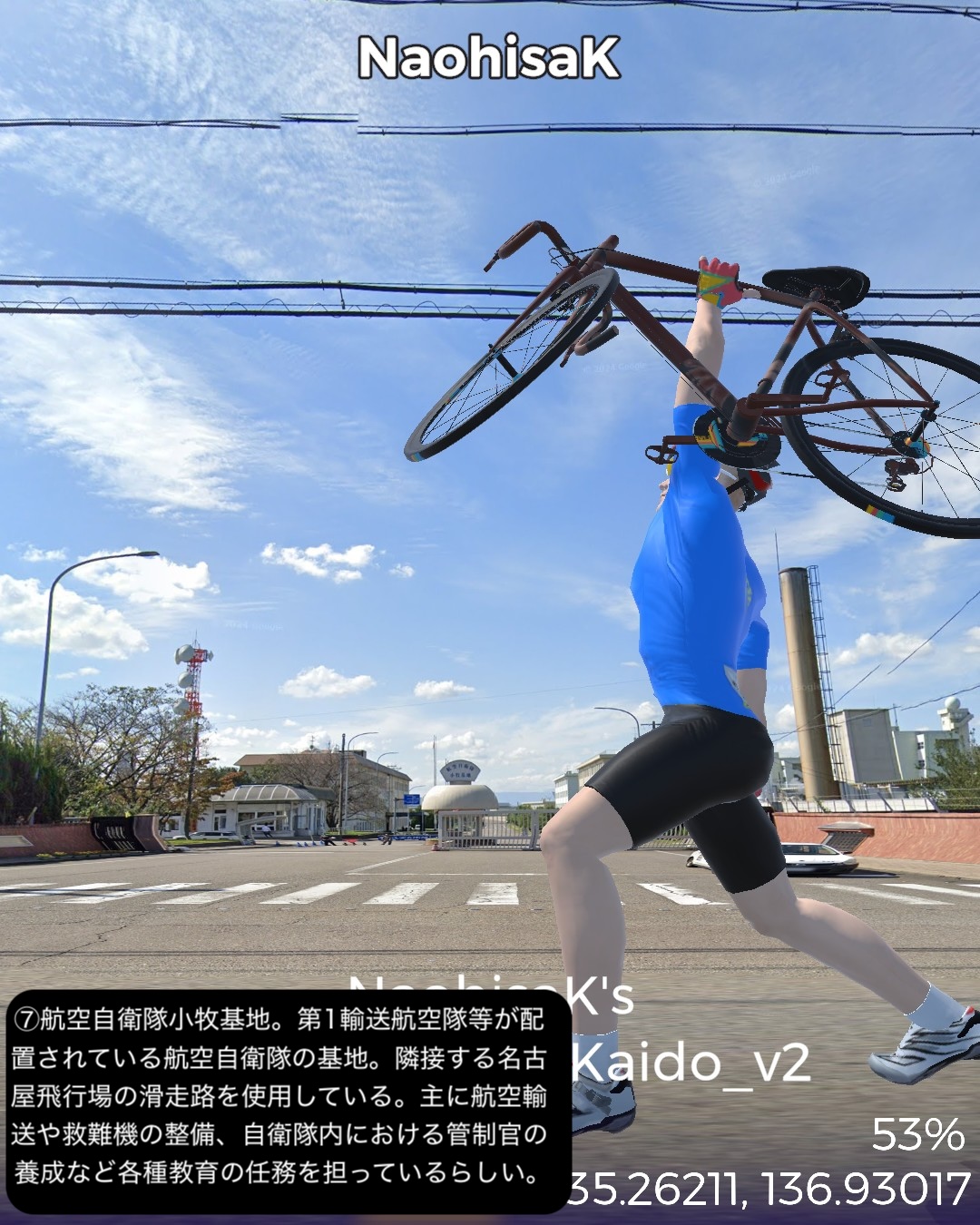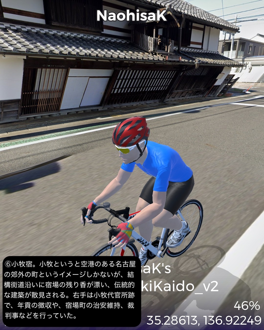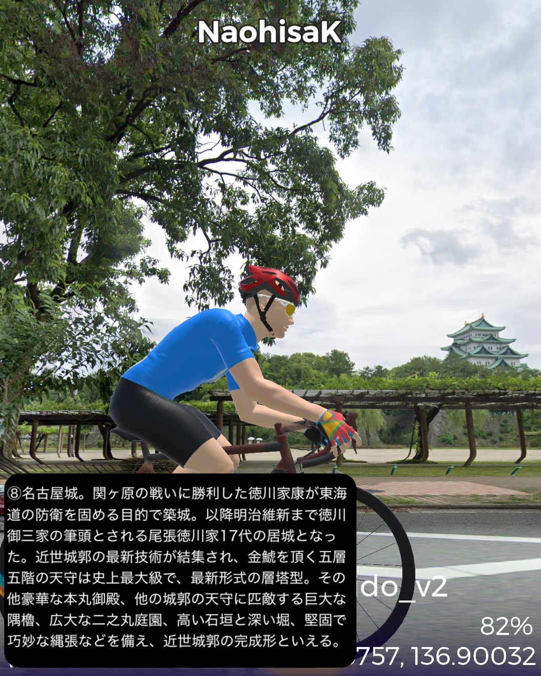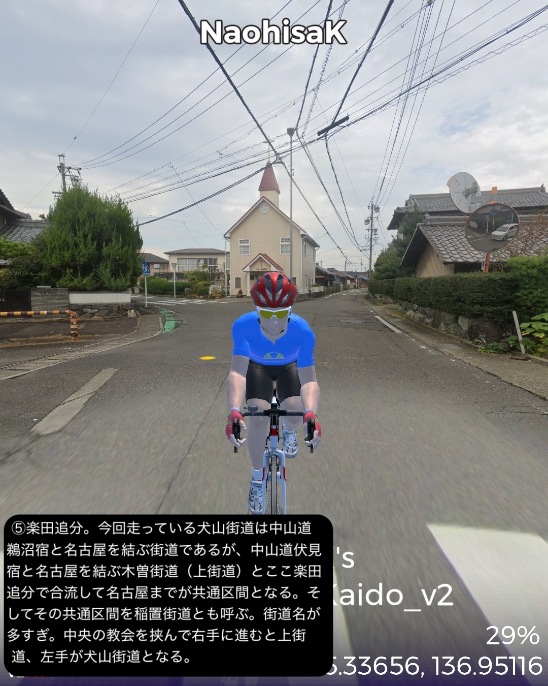 VRサイクリング 大都市名古屋へ到着の巻。飛騨街道終点でもある中山道太田宿を出発し、国道41号を通って城下町犬山へ。ここから犬山稲置街道に入り犬山城下町として観光地化された犬山宿を通りぬける。ここで早くも街道を外れて犬山近郊の明治村へ寄り道。また街道へ戻り南下すると次第に名古屋の都市圏の街並みに変わってゆく。小牧宿を通り名古屋空港や航空自衛隊基地の脇を抜け、春日井市から庄内川を渡ると名古屋市街。ランドマークの名古屋城、栄のテレビ塔をぐるっと表敬訪問してからゴールの名古屋駅に辿り着く58kmの行程。犬山は2年前にリアルに訪れたばかりだが、現存する日本最古の天守を持つ犬山城のプレゼンスが凄い。木曽川沿いの小高い丘の上に聳える天守はThe城という風格が漂う。天守からの眺めは多分日本の全ての城でもBestであろう。犬山宿は伝統的な商家が建ち並び正面に犬山城が見える街並みが、まさに犬山城下町という名称そのままの雰囲気で、ちょっと観光地化されすぎているきらいはあるが唯一無二の情緒があって良い。明治村は今年で60周年となるがまだ開園したばかりの子供の頃に名古屋の親戚に連れて行ってもらったのが思い出深い。昨年リアルに訪れた札幌の開拓村が似たようなコンセプトだが、さすが本家だけあって明治村の方が規模が大きい。フランクロイドライトの設計による帝国ホテルの正面玄関や北里柴三郎が設立した北里研究所本館など見どころも多い。また訪れてみたい場所だ。そして久々の大都会名古屋。ずっと中部地方の田舎を転々としてきた流れなので、都会に出てきた田舎者のように目まぐるしい景色に映る。母方の親戚が多く住んでいて子供の頃から訪れてお世話になってきた懐かしい街でもある。次回は番外編で名古屋市街と郊外の懐かしい場所や行ってみたかった場所を一巡りする。