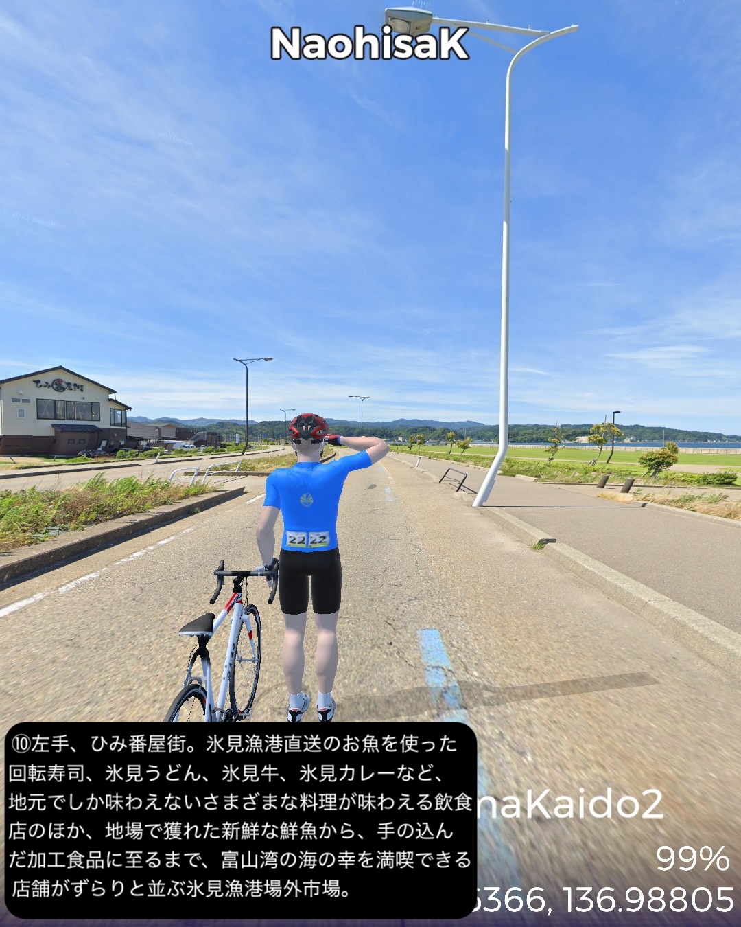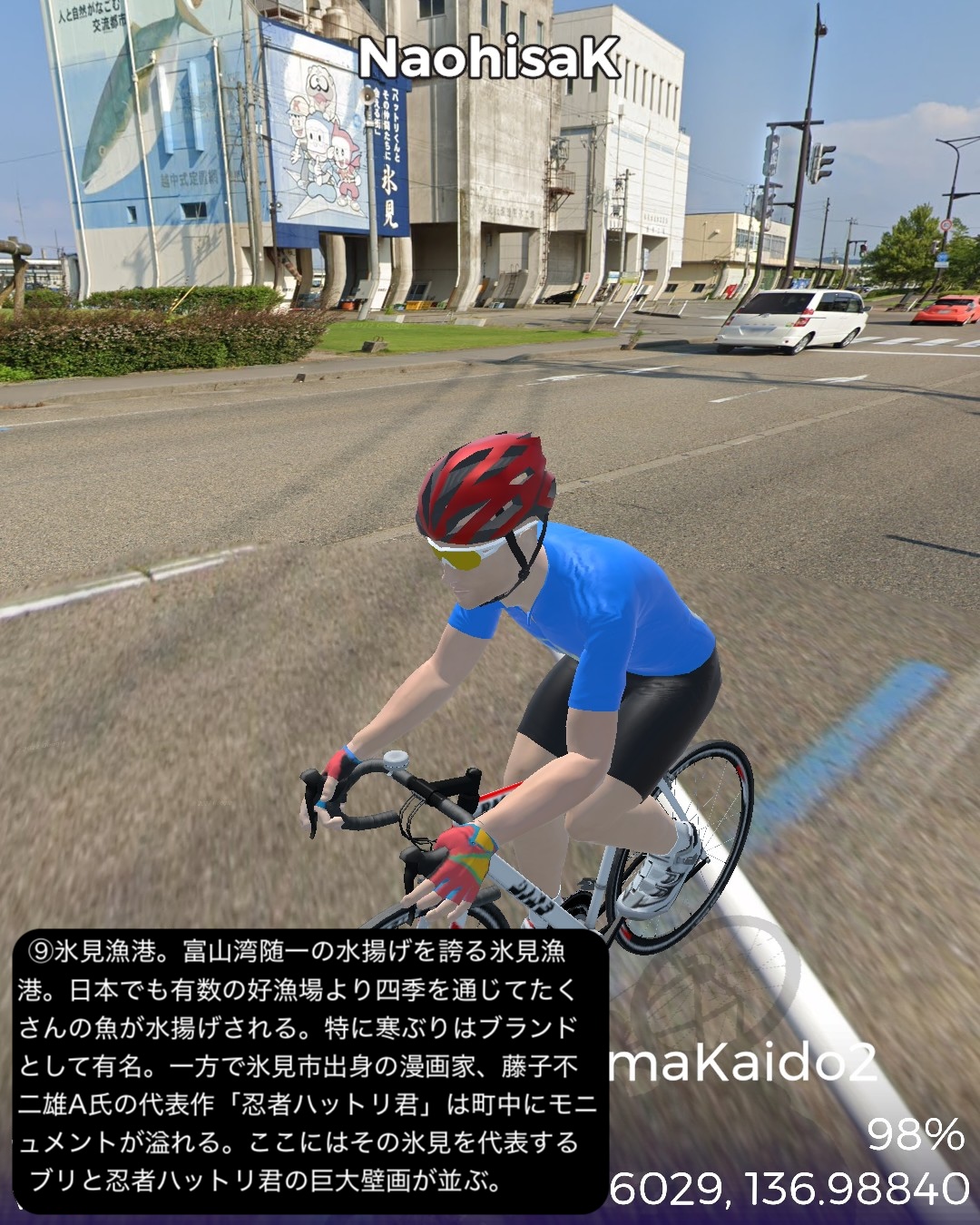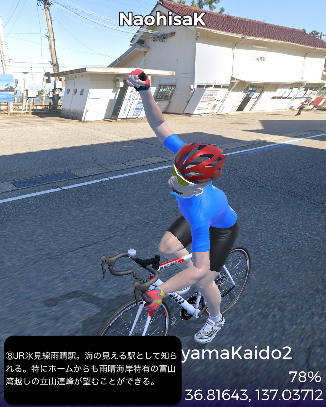 VRサイクリング 富山周辺をぐるっと一巡りの巻。前回のゴール地点滑…