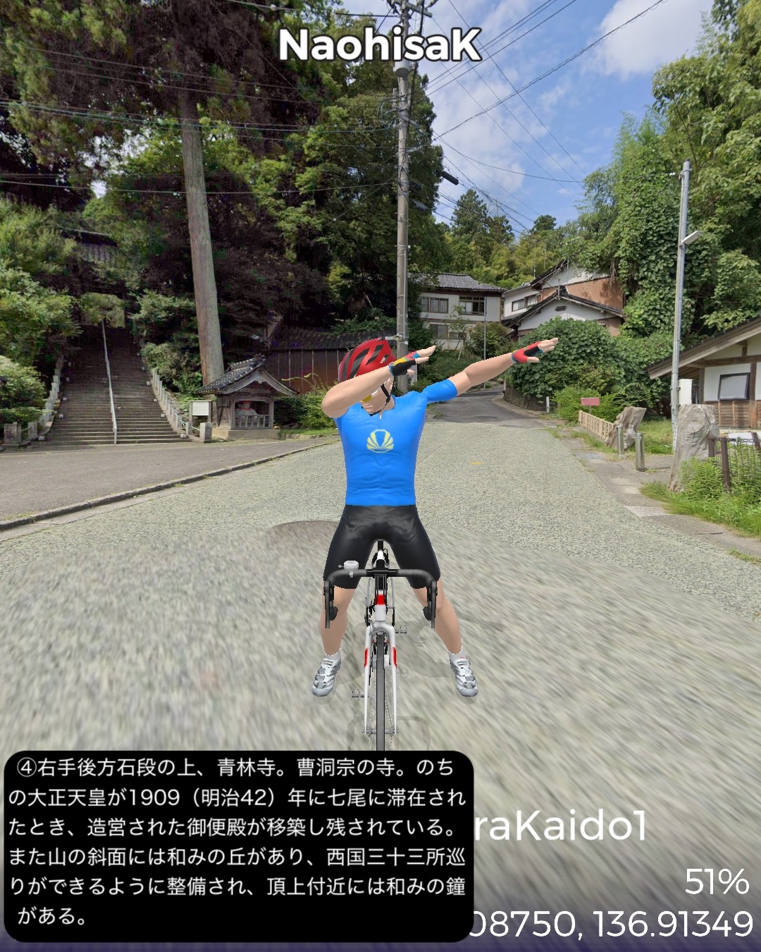 VRサイクリング 大都市名古屋へ到着の巻。飛騨街道終点でもある中山…