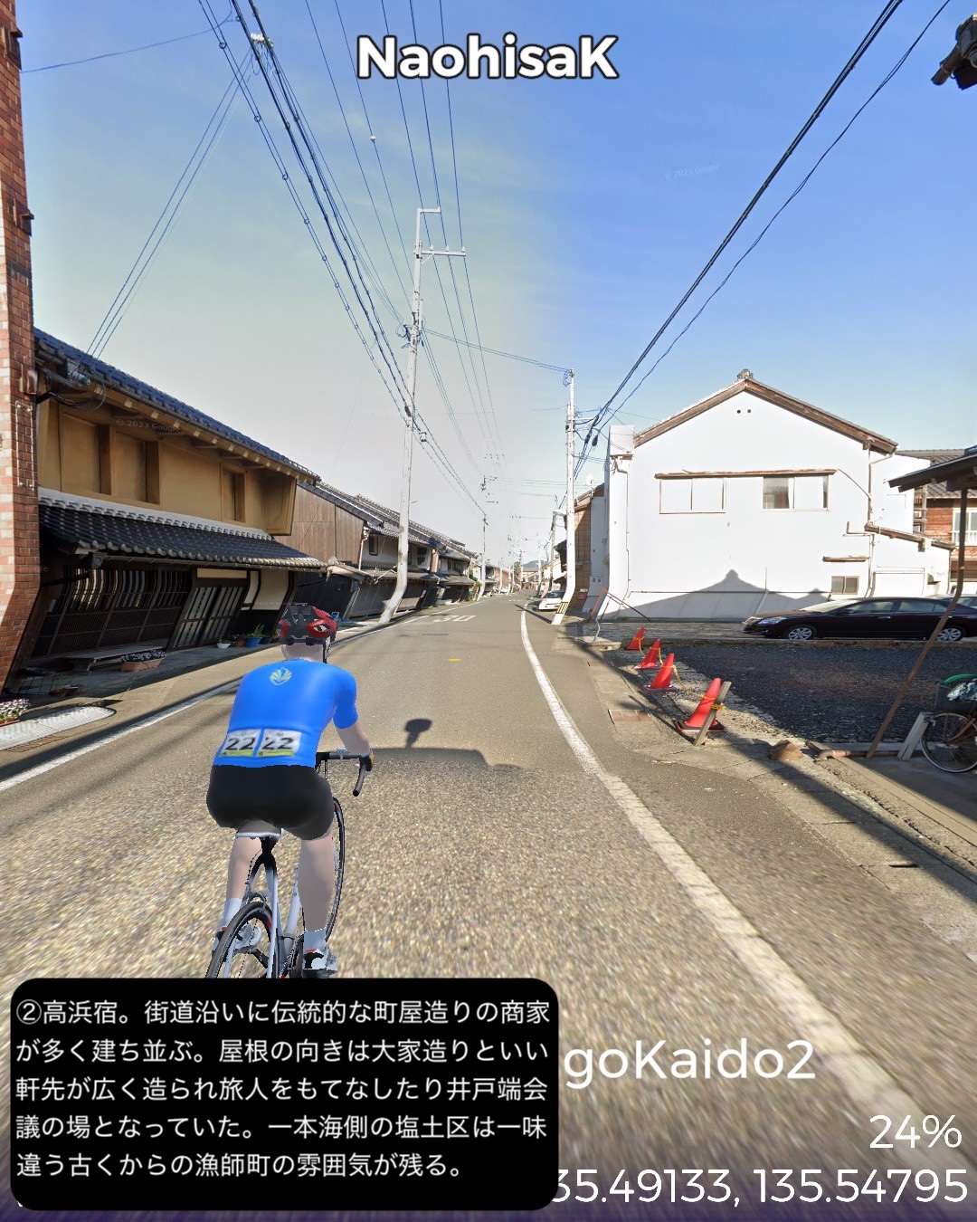 VRサイクリング 大都市名古屋へ到着の巻。飛騨街道終点でもある中山…