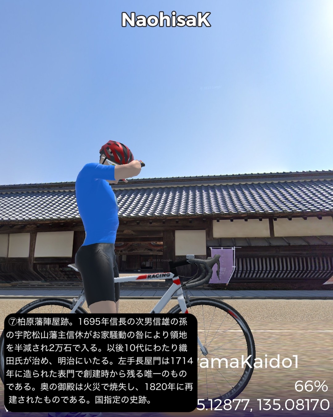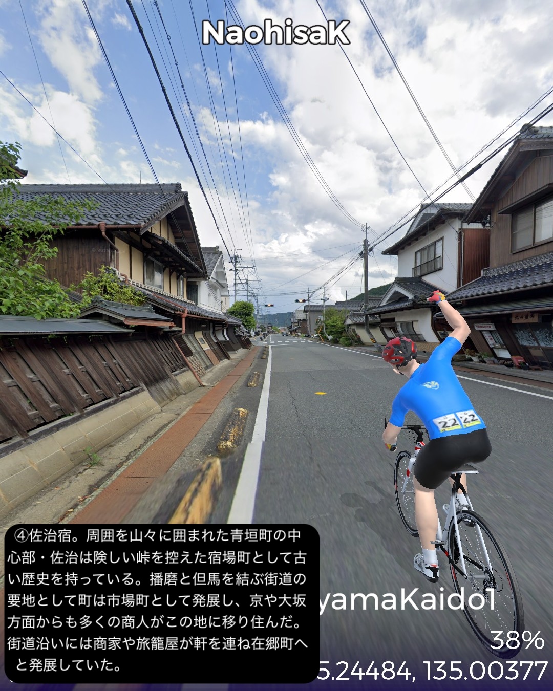 VRサイクリング 大都市名古屋へ到着の巻。飛騨街道終点でもある中山…