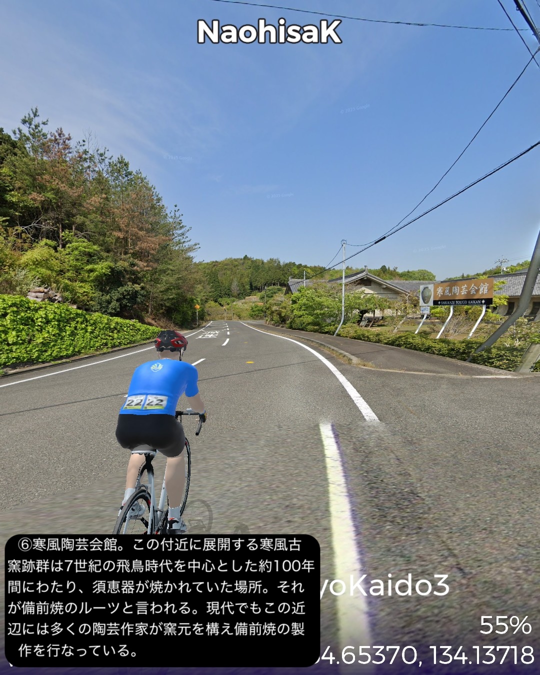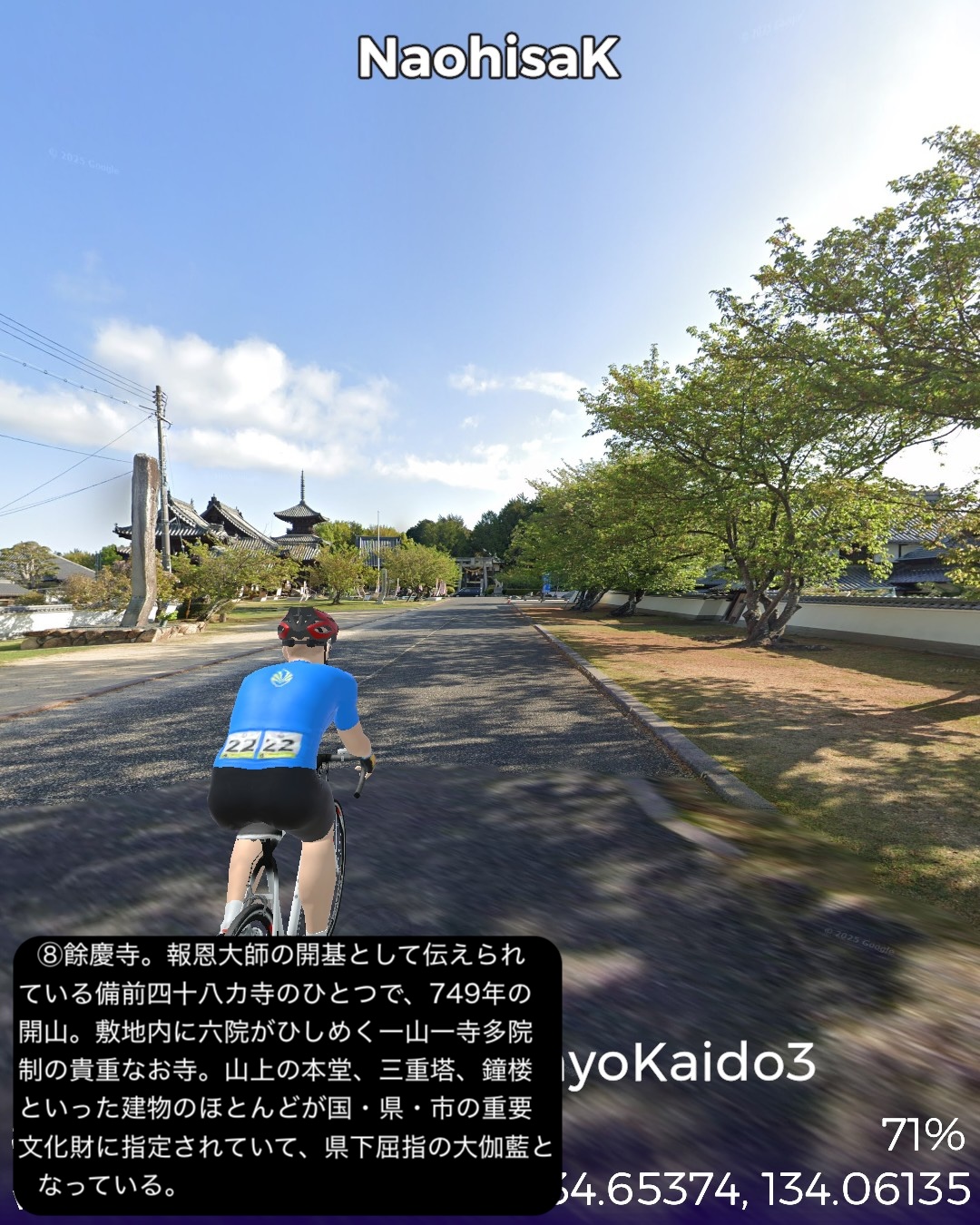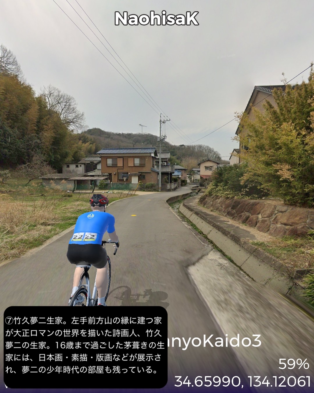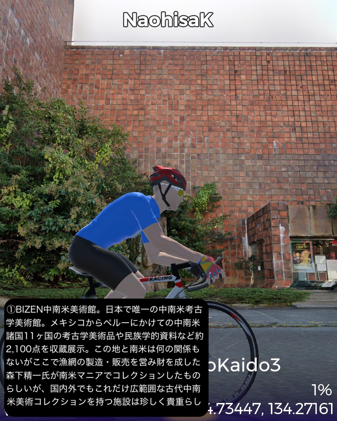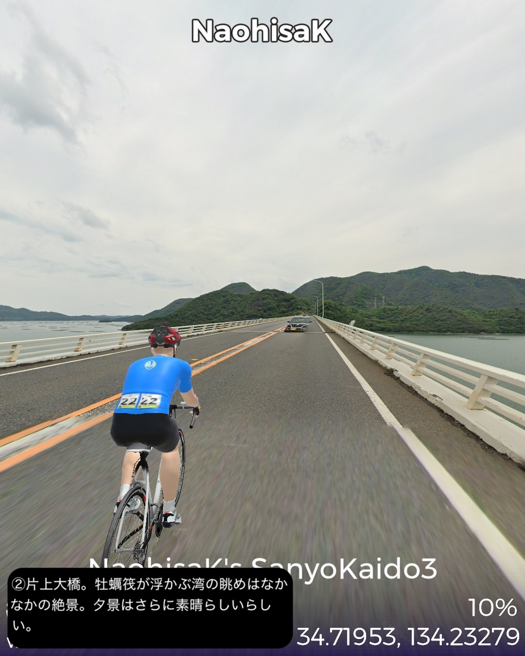 VRサイクリング 山陽海道3日目。岡山県東部の瀬戸内海沿岸を進むの巻。前回日生諸島へ渡った日生市街手前の分岐点をスタートして西へ進む。まもなく奥の深い片上湾を渡る片上大橋を渡りほとんど人家が見られない内陸の丘陵地帯をしばらく走った後、昔東洋一を誇った錦海塩田跡を縦断すると、古代から江戸時代まで寄港地として繁栄した湊町牛窓に着く。一部超レトロ、一部リゾート的な雰囲気を併せ持つ牛窓の町を抜けて再度内陸へ入る。備前焼の里や竹久夢二の生家のある邑久付近をすり抜けて平野を西へ進み大河吉井川を渡ると高瀬舟が往来し、北前船も寄港した湊町として繁栄した湊町・門前町の西大寺。町並みをぐるっと巡ったのち吉井川に沿って再度海岸へ出ると対岸の児島半島が近い静かな深い湾。四手網小屋が建ち並ぶ海岸沿いを進むとまもなくゴールの新岡山港。山陽海道と名うった道筋を3回続けてきたが、やはり4年半前に通った、より内陸を通る西国街道よりも史跡が多く歴史的にも繁栄の痕跡の残る町が多い。どうやら江戸時代以前、中国地方は陸路ではなく海路で移動するのが主流だったんだな、と胸落ちした。今回も牛窓と西大寺という味のある歴史的町並に遭遇して楽しい旅となった。特に牛窓は日本のエーゲ海と呼ばれる美しい海岸に沿って続くレトロな家並に魅了された。知られざる土地でアクセスも不便だが訪れてみたい町となった。さて岡山付近まで進んだ山陽海道だがここで一旦中断してしばらく紆余曲折モードに入る。次回は今回ゴールの新岡山港からフェリーで渡った小豆島を攻める。