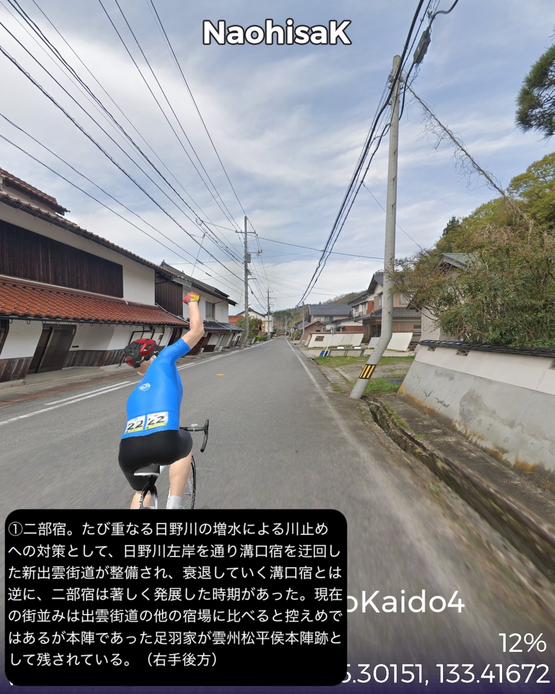 VRサイクリング 奥出雲を宍道尾道街道・木次阿井往還・湯町八川往還…