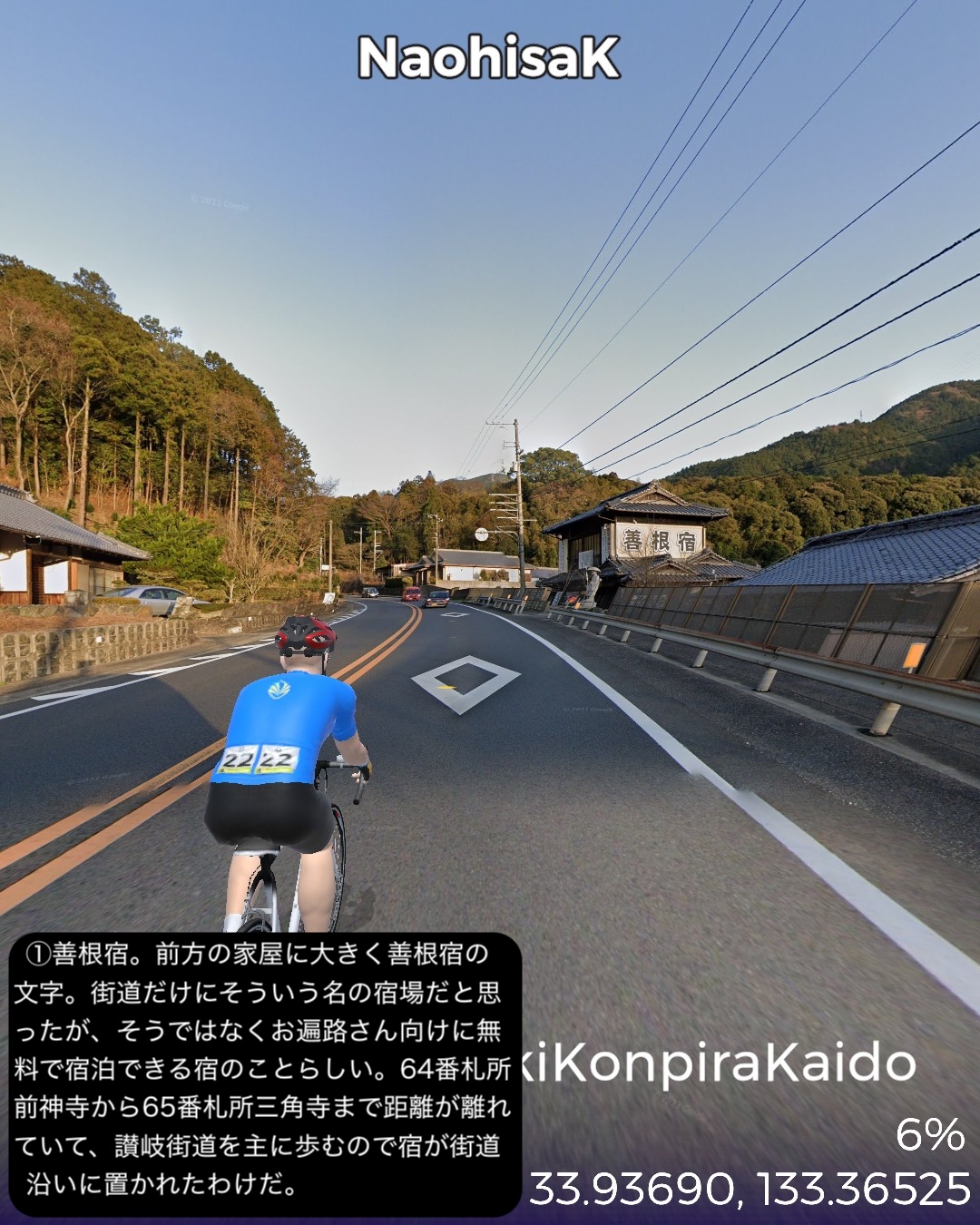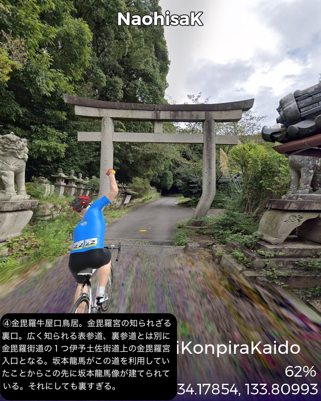 VRサイクリング 高松から四国を巡る旅に出る。今回は讃岐街道で徳島…