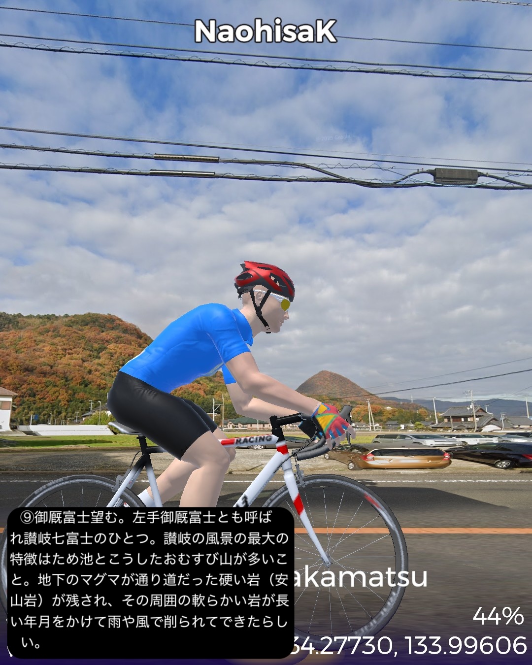 VRサイクリング 淡路島を明石海峡から鳴門海峡まで縦断するルート。…