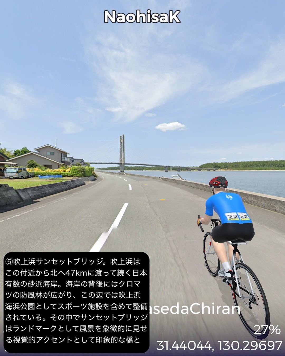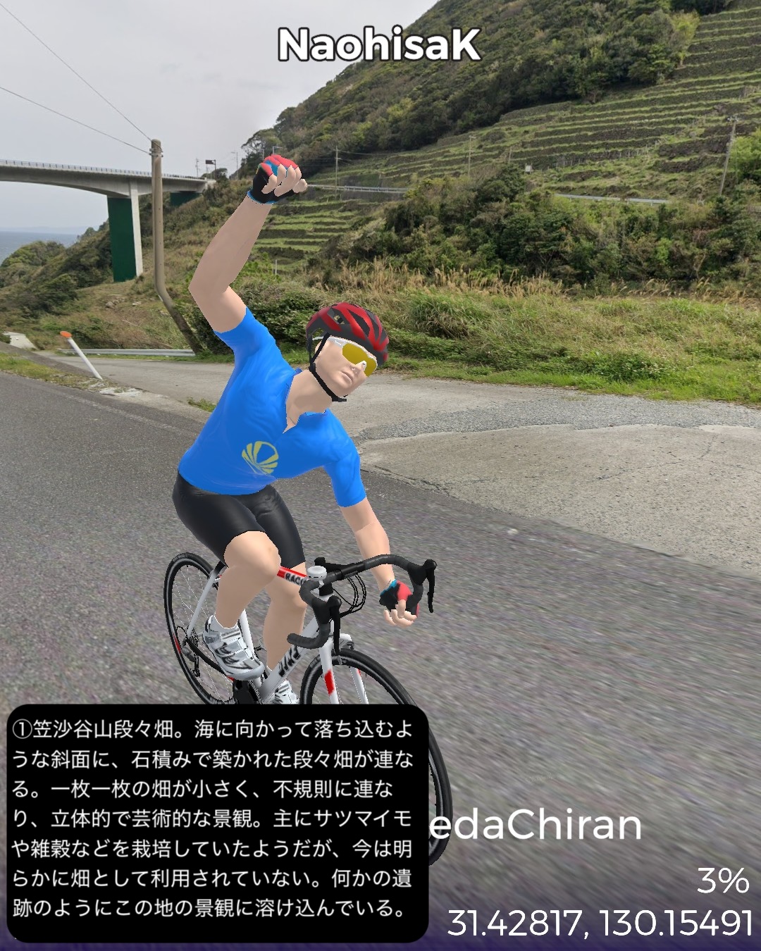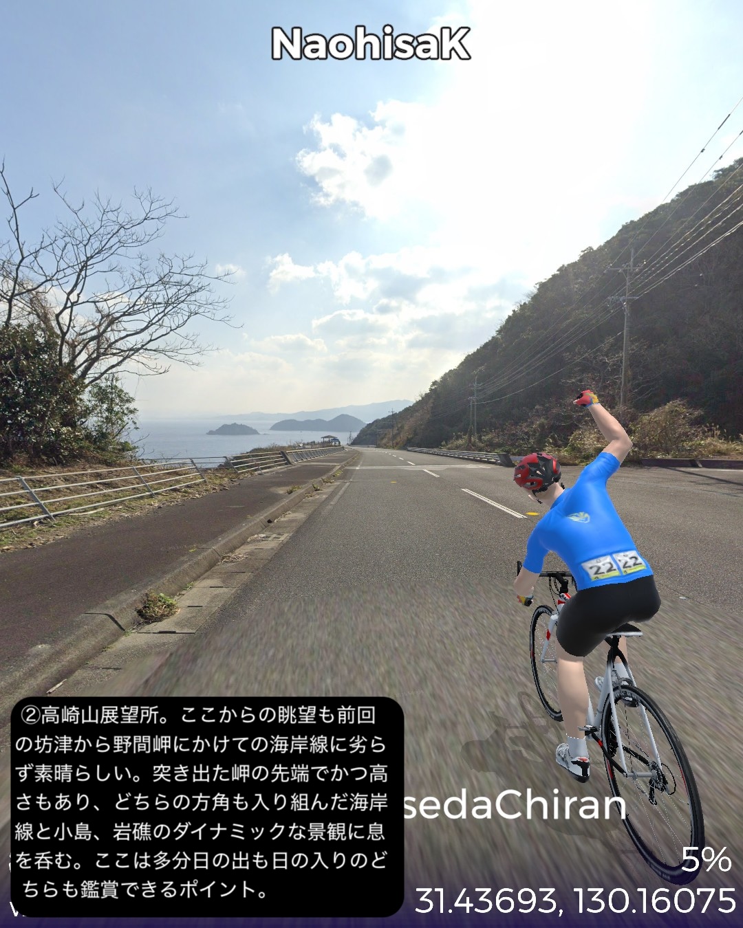 VRサイクリング 坊津街道2日目。薩摩半島南岸を東端から西端まで進…