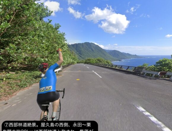 VRサイクリング 世界遺産の島、屋久島を巡る旅1日目。緑の回廊と称される島の周回道路に沿っ…